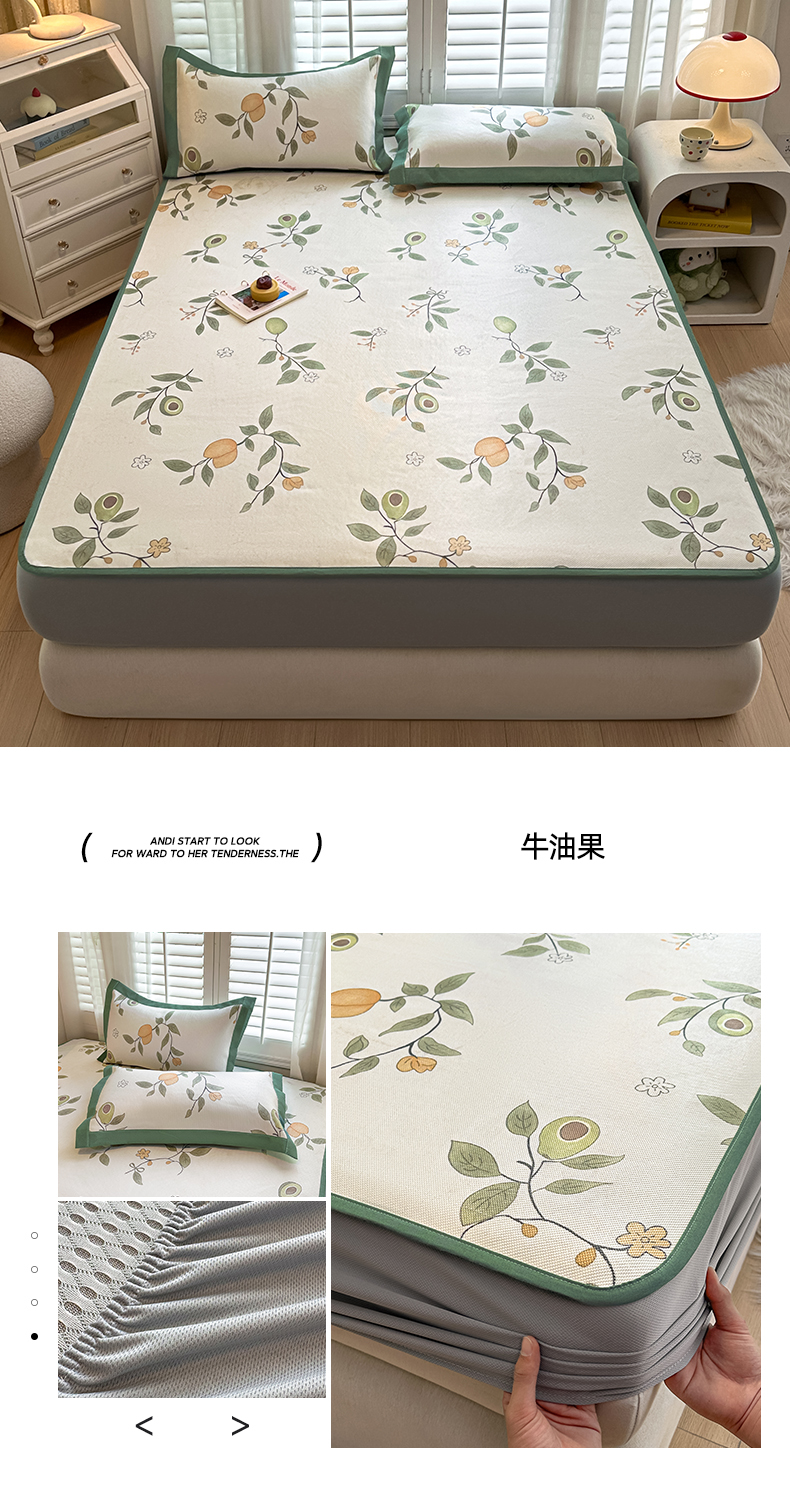 商品名称:花言狐语 2025新款真冰藤印花床笠款凉席 牛油果