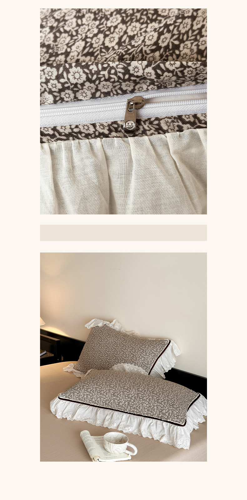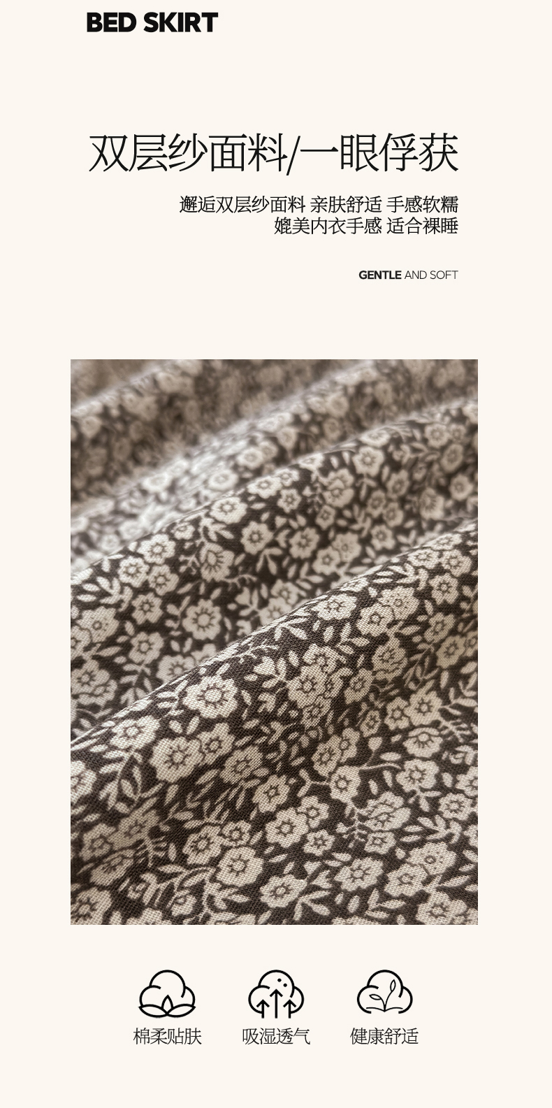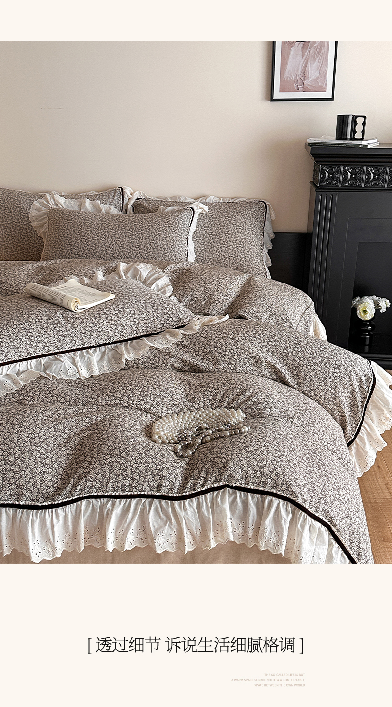 蓝邻家纺 2025春夏新款全棉纯棉复古双层纱花边织带款四件套 莱茵茶桂