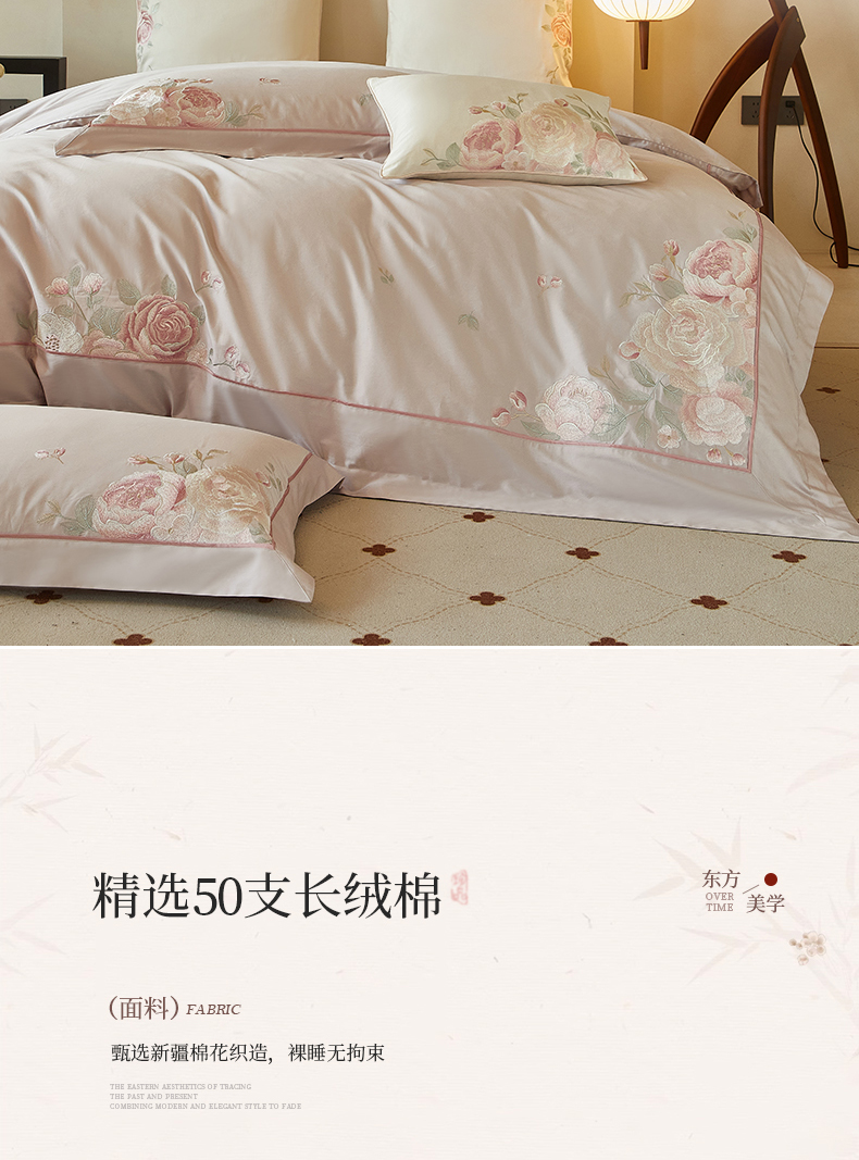 【2025】50支50S长绒棉刺绣四件套新中式工艺款 温馨满园芋紫 控价478-498元