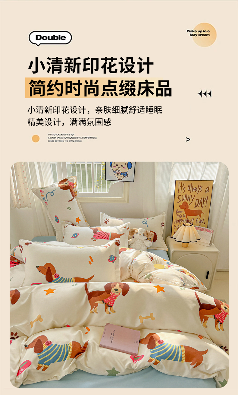 当前位置: 91家纺网 > 商品网购 > 床品套件 > 四件套 > 化纤普通四件套 > 悦织湾家纺 2025新款印花学生宿舍亲肤芦荟棉三件套单双人四件套轻奢印花磨毛床上用品 腊肠派对