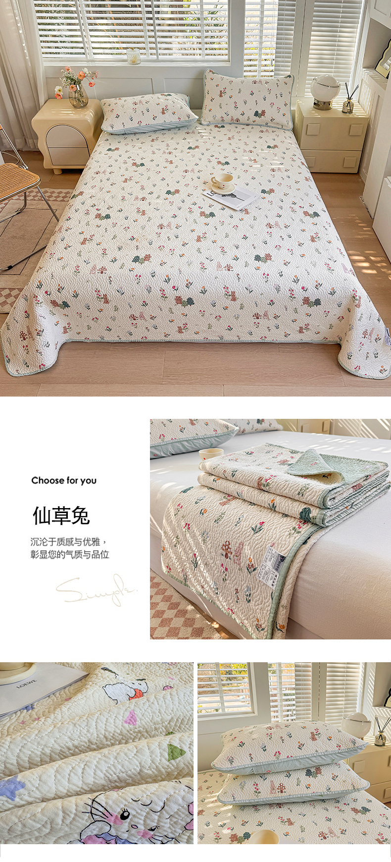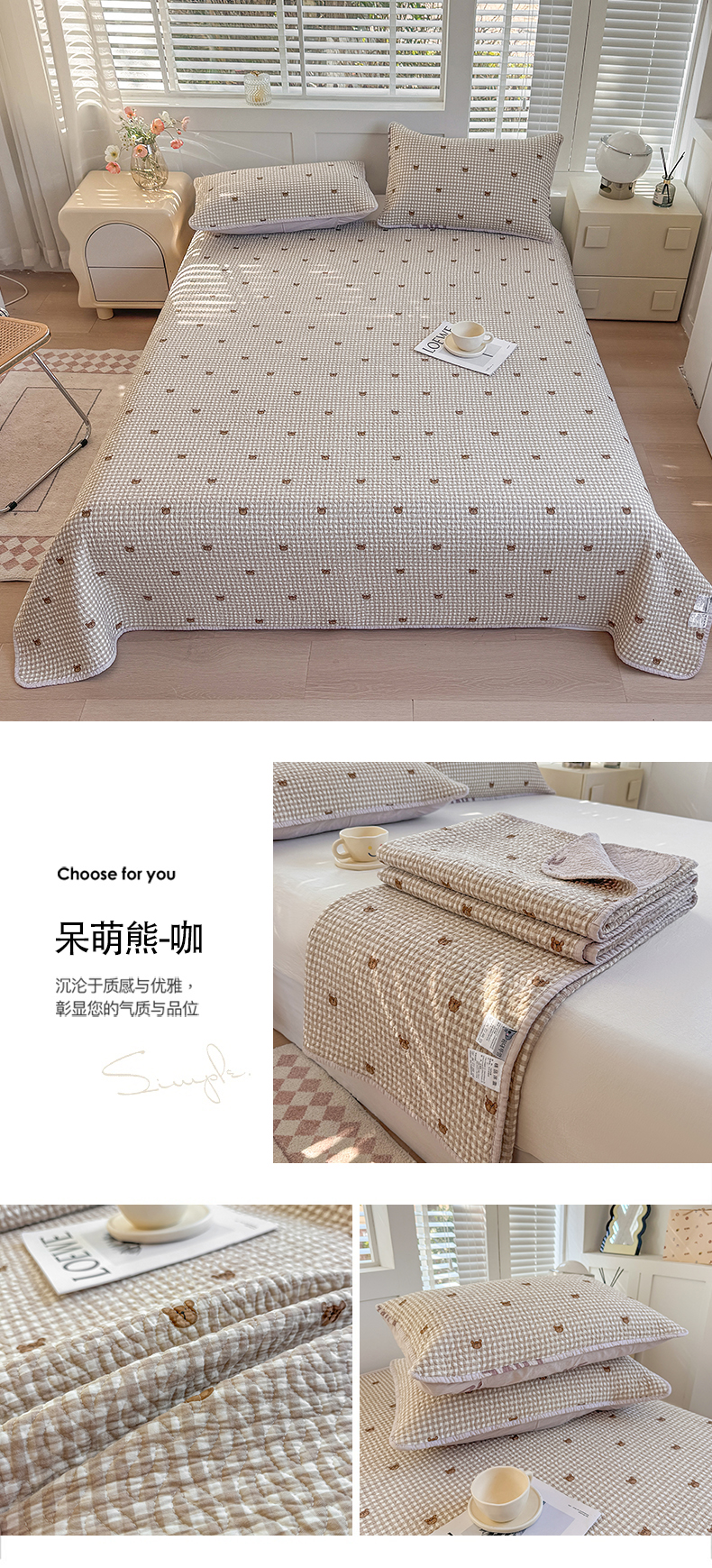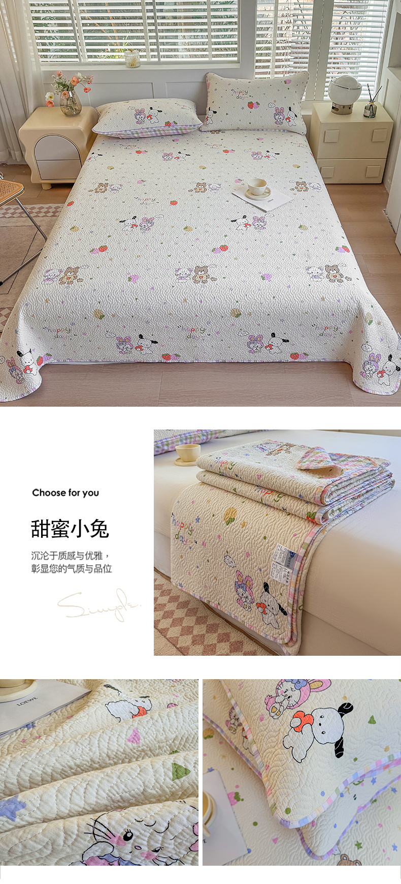 (总)宜梦家居【需要买家秀请联系老板】 2025新款双面纯棉夹层新疆棉花高温砂洗全棉床盖,爱达拉蓝,爱达拉粉,呆萌熊咖,迪克奥莱,美味樱桃,清茶小熊,踏春小兔,甜蜜小兔,仙草兔,银杉之梦