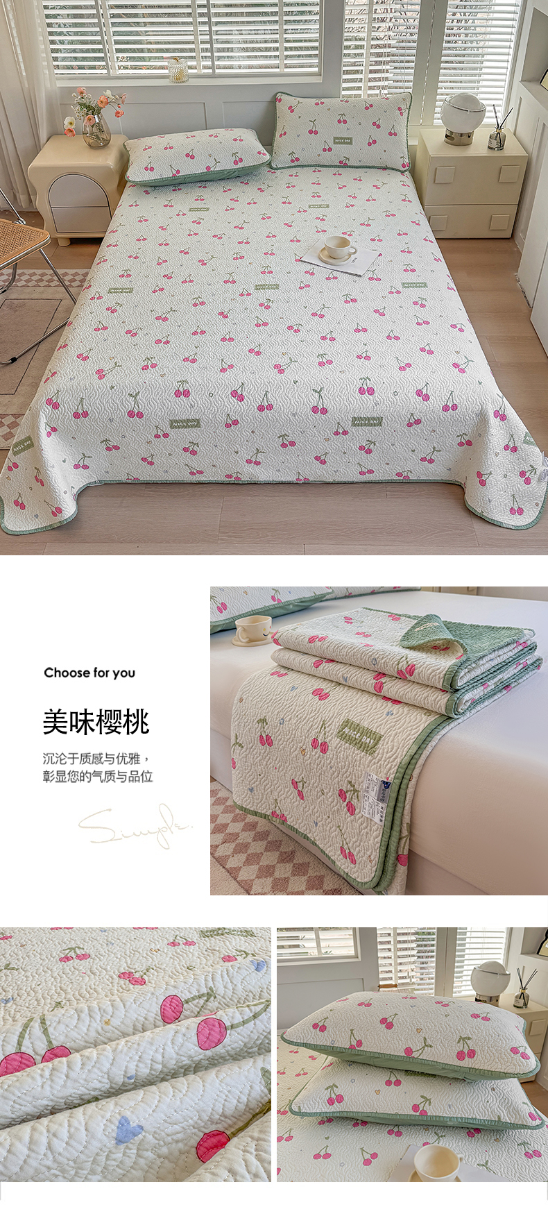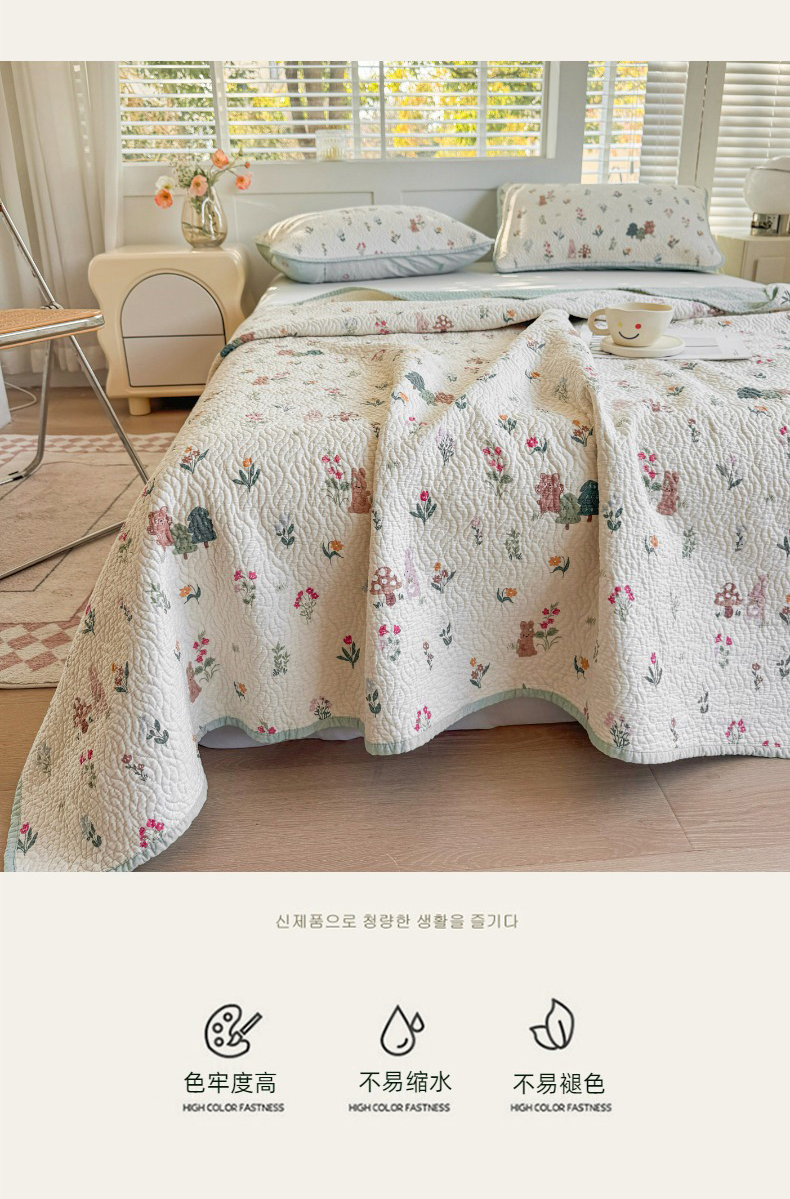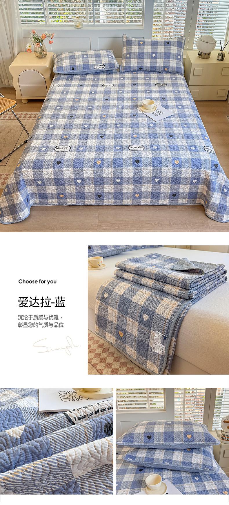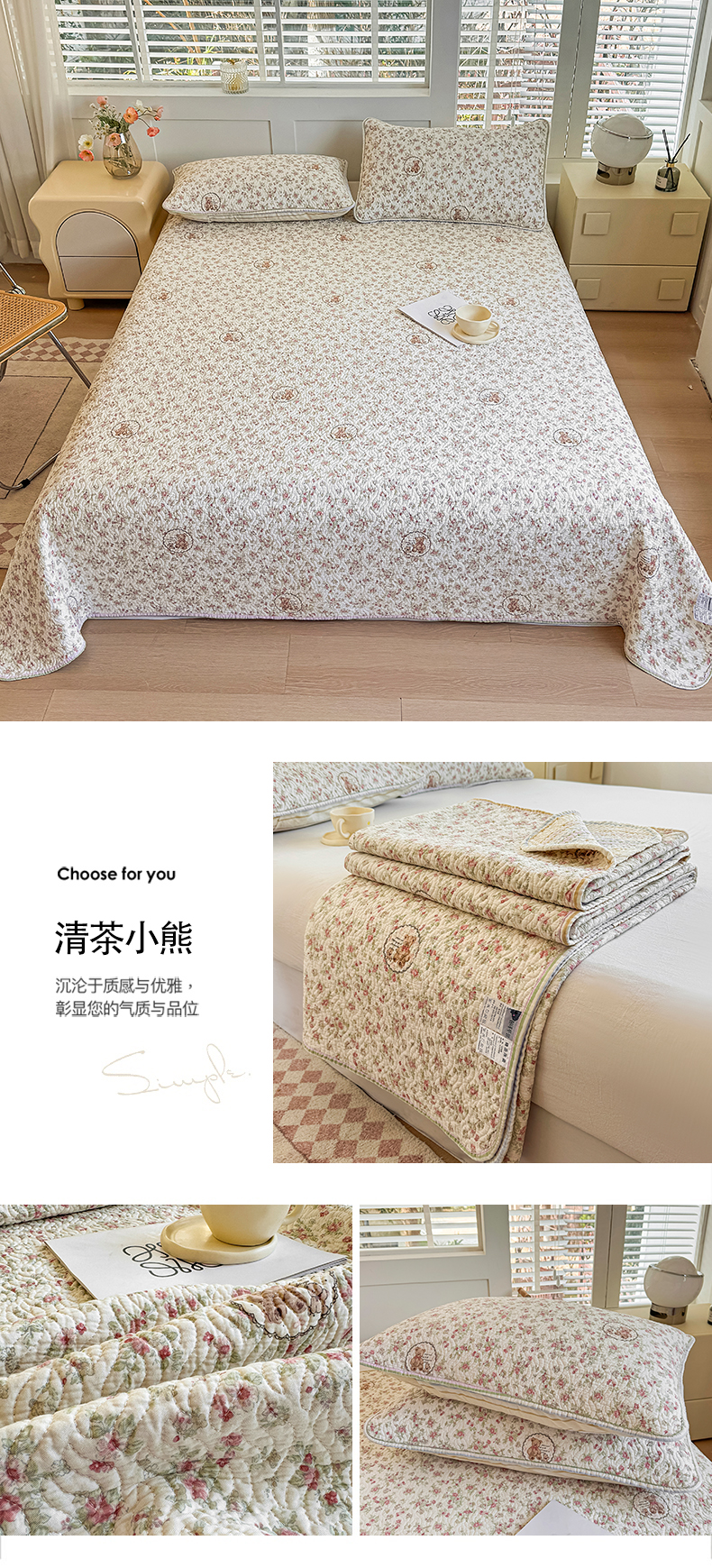 (总)宜梦家居【需要买家秀请联系老板】 2025新款双面纯棉夹层新疆棉花高温砂洗全棉床盖,爱达拉蓝,爱达拉粉,呆萌熊咖,迪克奥莱,美味樱桃,清茶小熊,踏春小兔,甜蜜小兔,仙草兔,银杉之梦