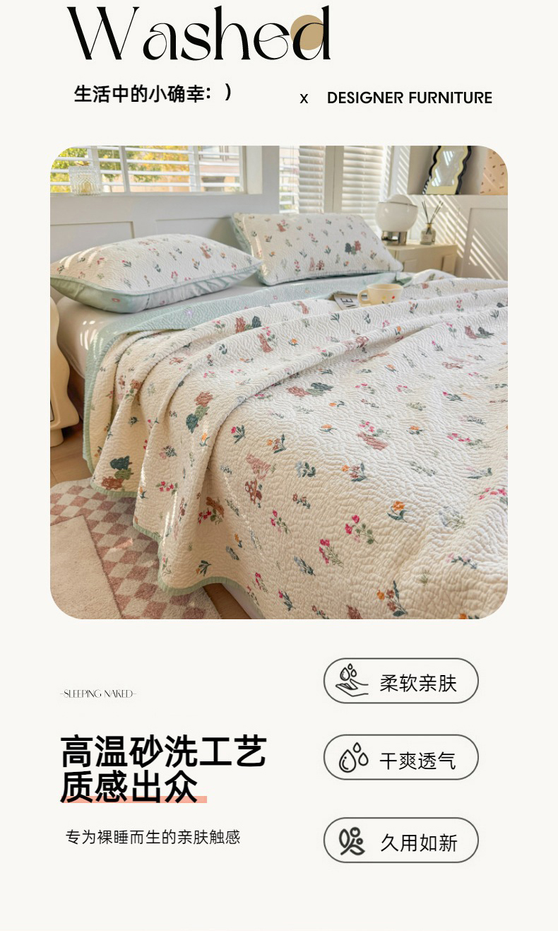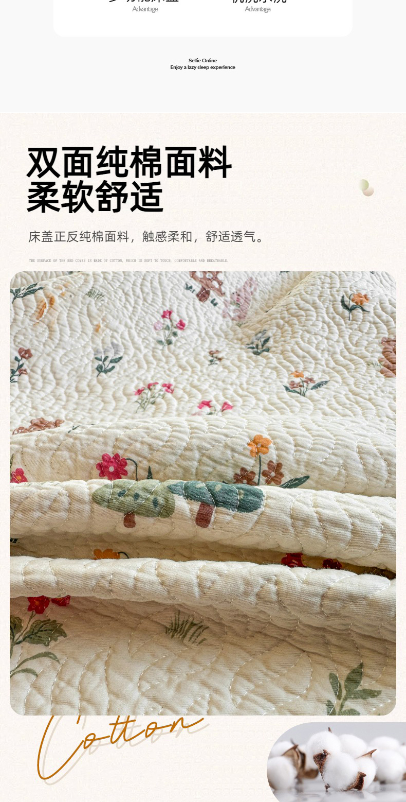 商品名称:(总)宜梦家居【需要买家秀请联系老板】 2025新款双面纯棉夹层新疆棉花高温砂洗全棉床盖