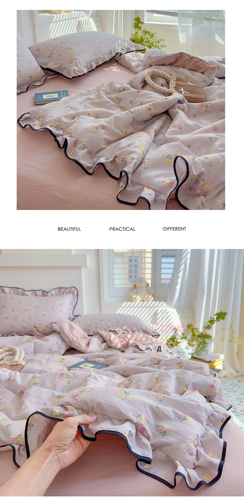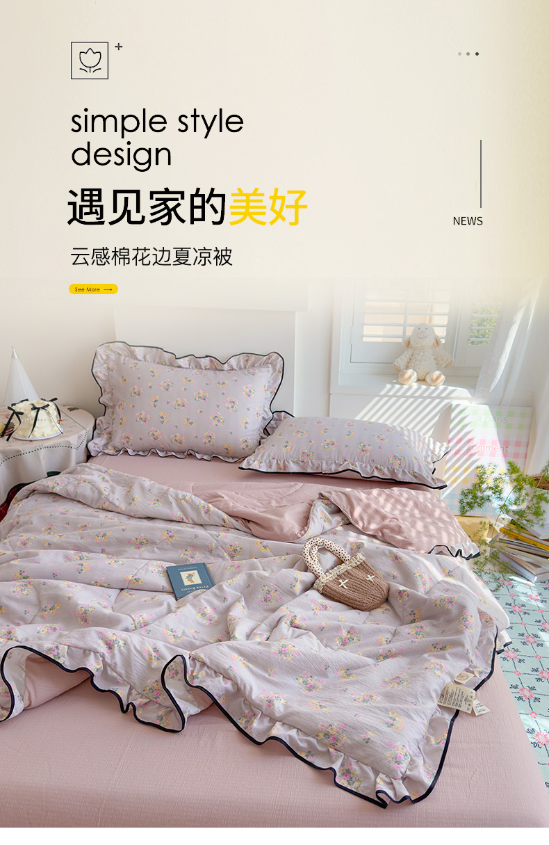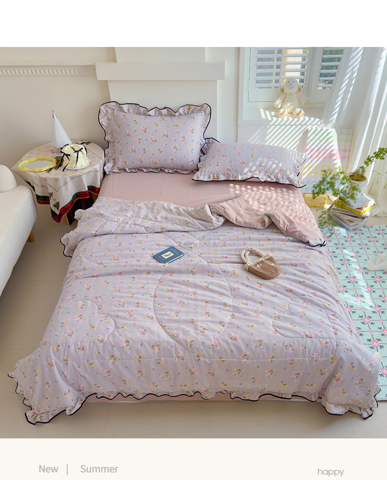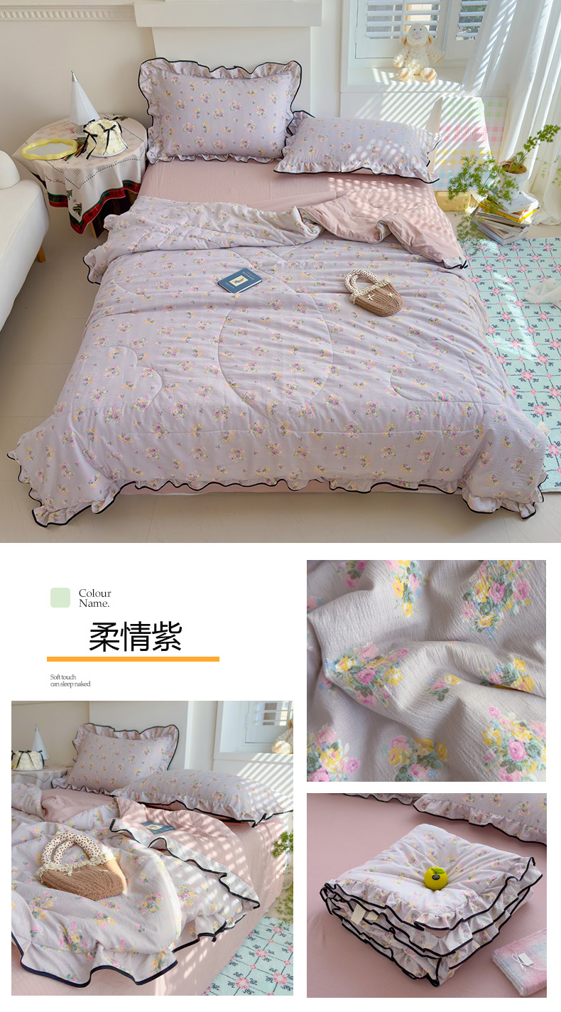 商品名称:慕尚 2025新款云感棉花边夏凉被空调被 柔情紫