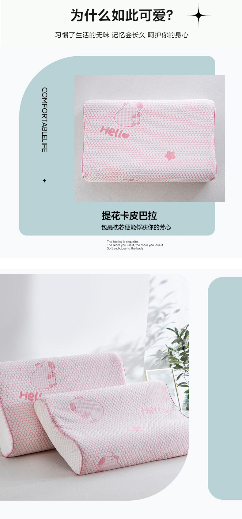 商品名称:大黄蜂家居家纺2025新款卡皮巴拉凉感冰豆豆乳胶单枕套枕套单件 卡皮巴拉粉