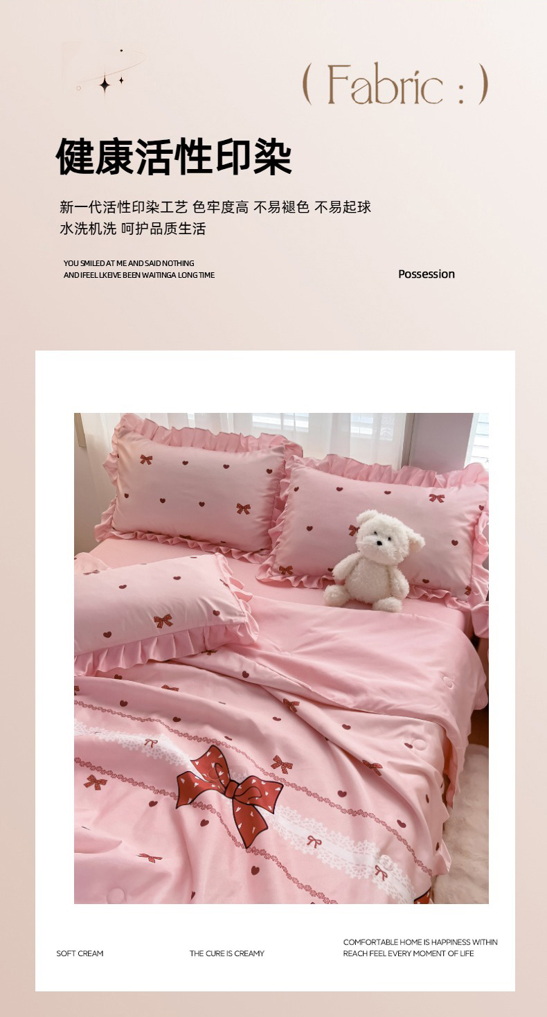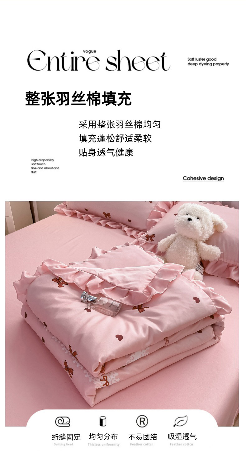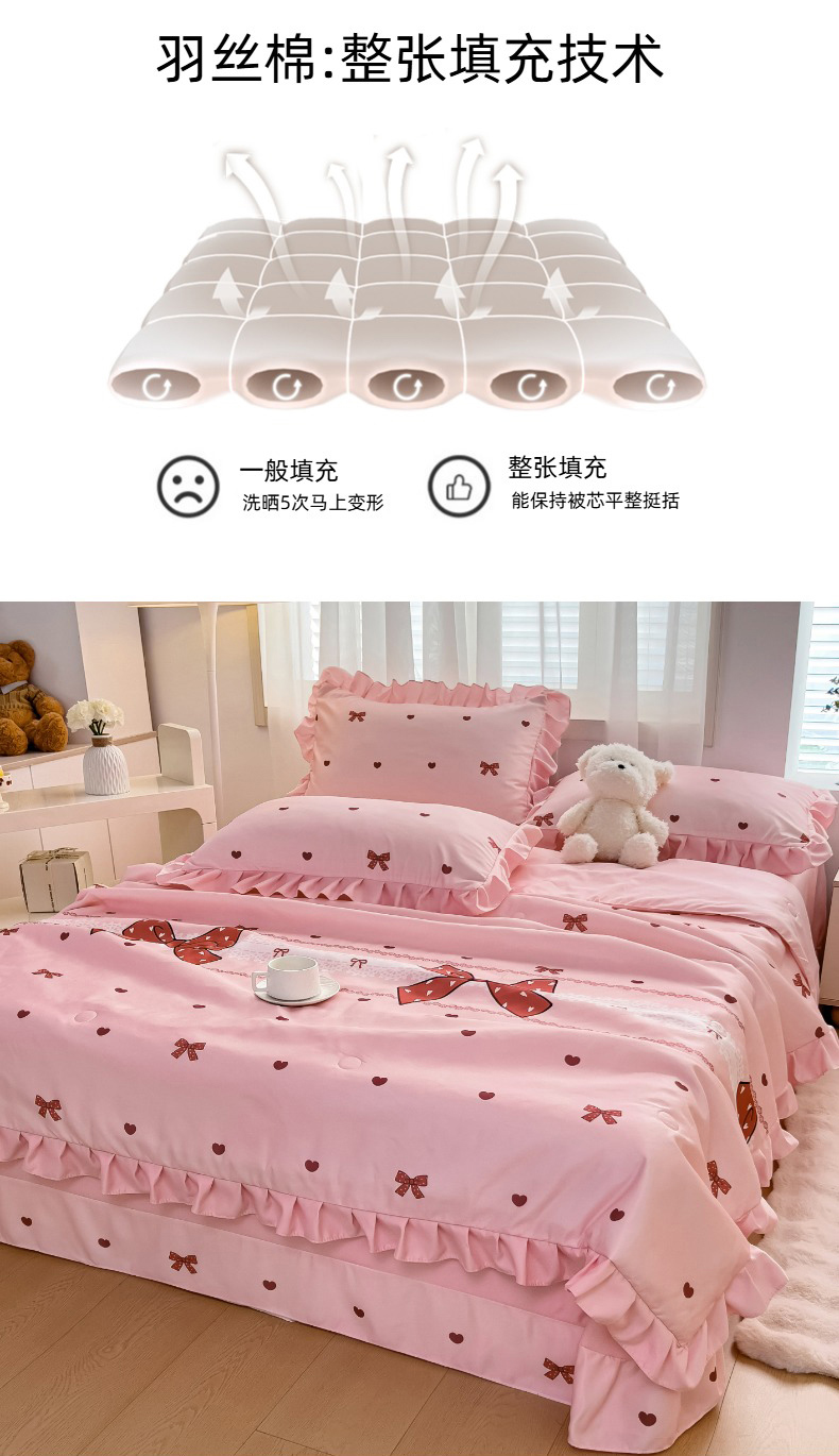 商品名称:找底底家纺 2025新款60S水洗天丝夏被夏凉被空调被床裙四件套 爱心蝴蝶结