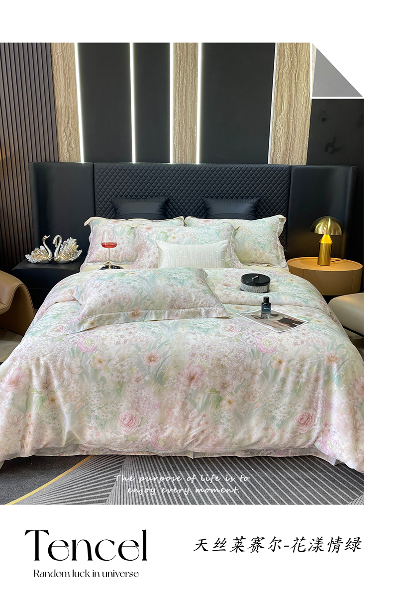 (总)莱豫2025新款50支莱赛尔天丝四件套,布兰奇粉,春风十里,春日落樱,扶光,禾暮粉,花黛米,花岛邮局,花漾情绿,花漾情玉,花影之恋紫,悸川,绿光森林,梦甜粉,茉雅紫,墨竹,浅筏花亦,山茶酿,水墨意境,微梦,雾色玫瑰,寻春色,遇春雪米,紫陌,紫雾