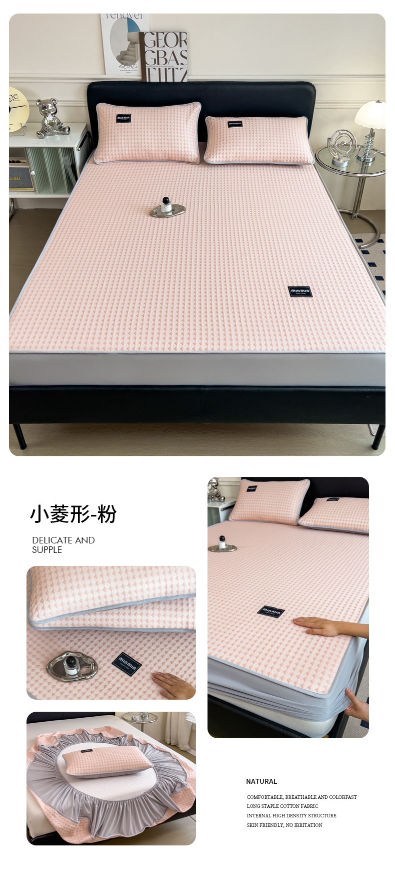 商品名称:(总)丝羽坊 2025新款立体冰豆豆纯色软凉席-床笠款 小菱形-粉