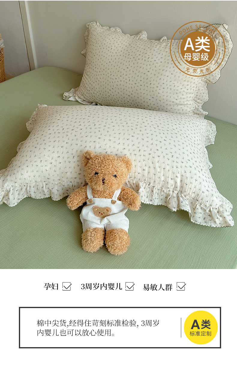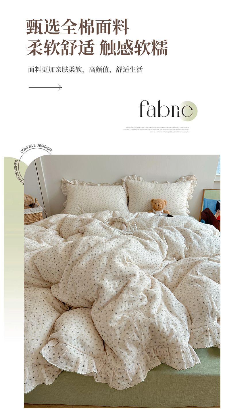 商品名称:2025新韩版花边全棉双层皱皱纱布四件套 清新奶盐