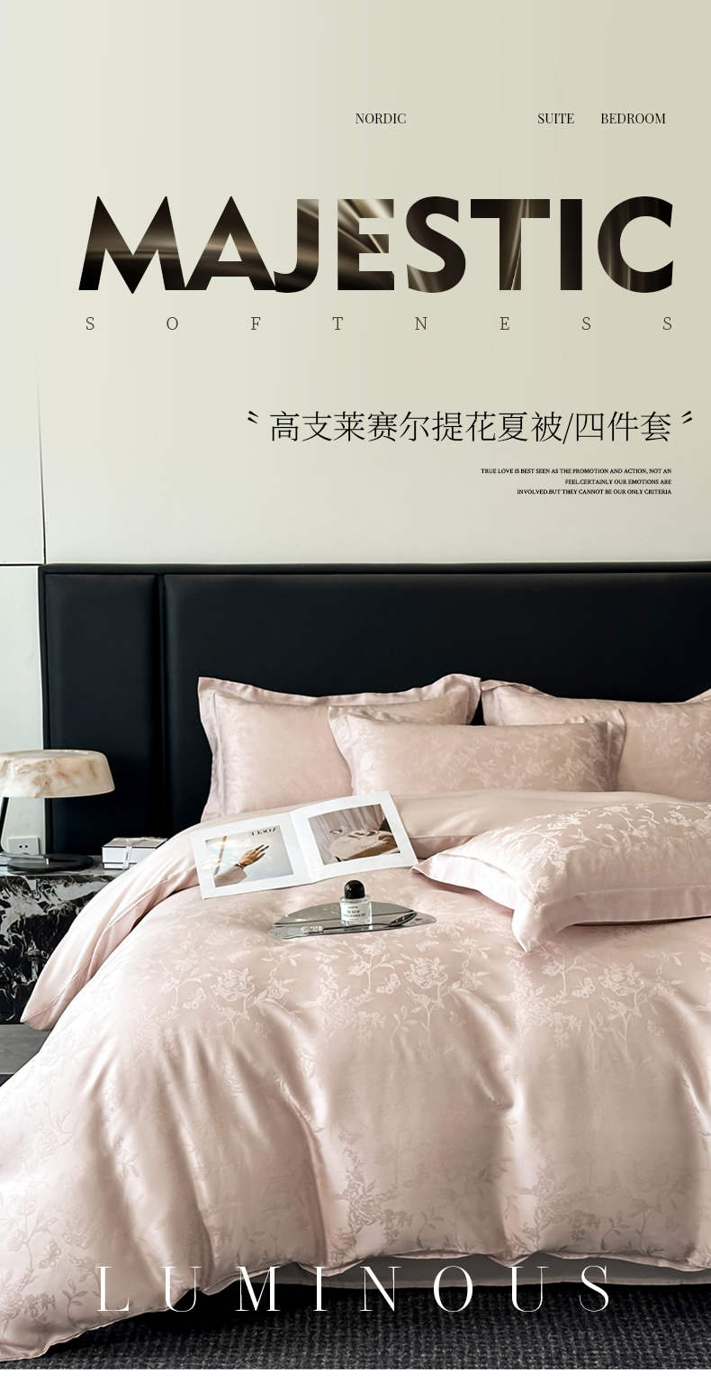 商品名称: 慕晨 2025新款莱赛尔提花四件套高级简奢款天丝夏被4件套直播热款 艾尔