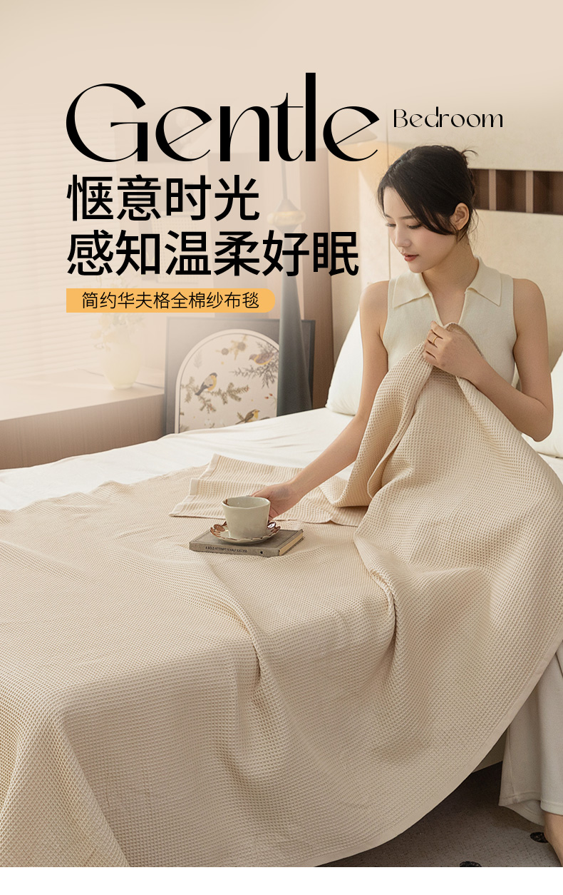 商品名称:乐家毛巾被 2025春夏新款日式华夫全棉纯棉毛巾被 华夫格-米