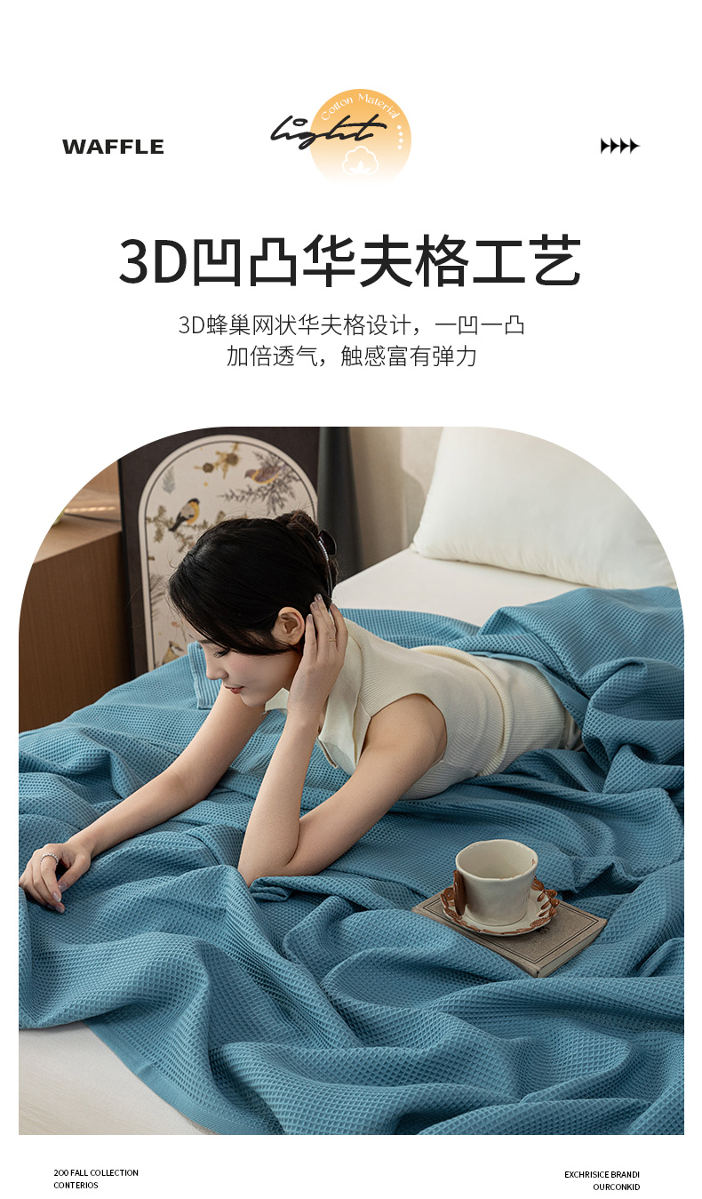 (总)乐家毛巾被 2025春夏新款日式华夫全棉纯棉毛巾被,华夫格-粉,华夫格-灰,华夫格-米,华夫格-深蓝,华夫格-天蓝,华夫格-棕