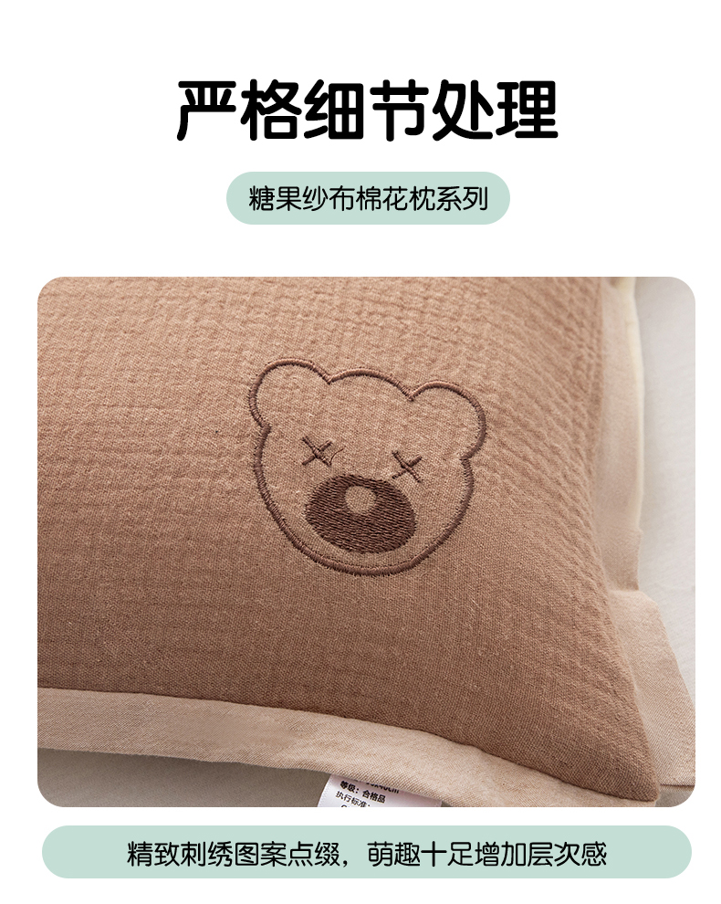 当前位置: 91家纺网 > 商品网购 > 枕头/枕芯/保健枕/颈椎枕 > 普通枕芯 > 麦肯锡 2025新款糖果纱布棉花枕 棕球球30*50
