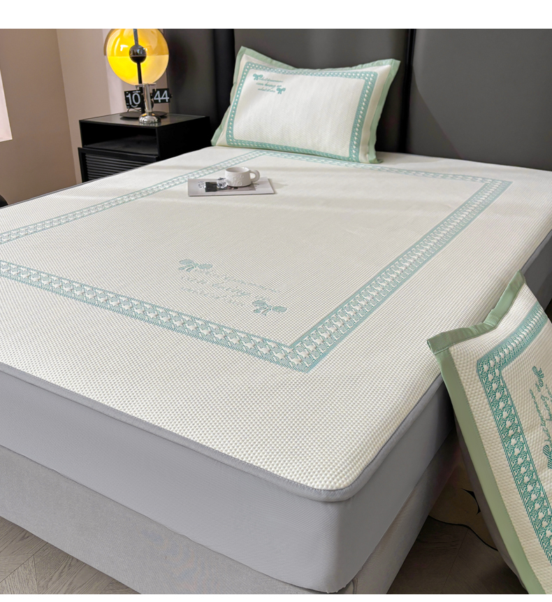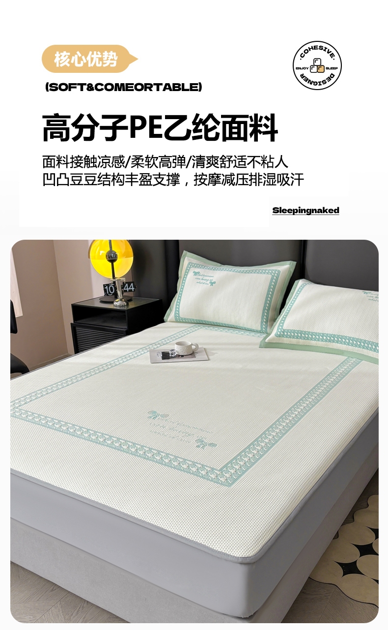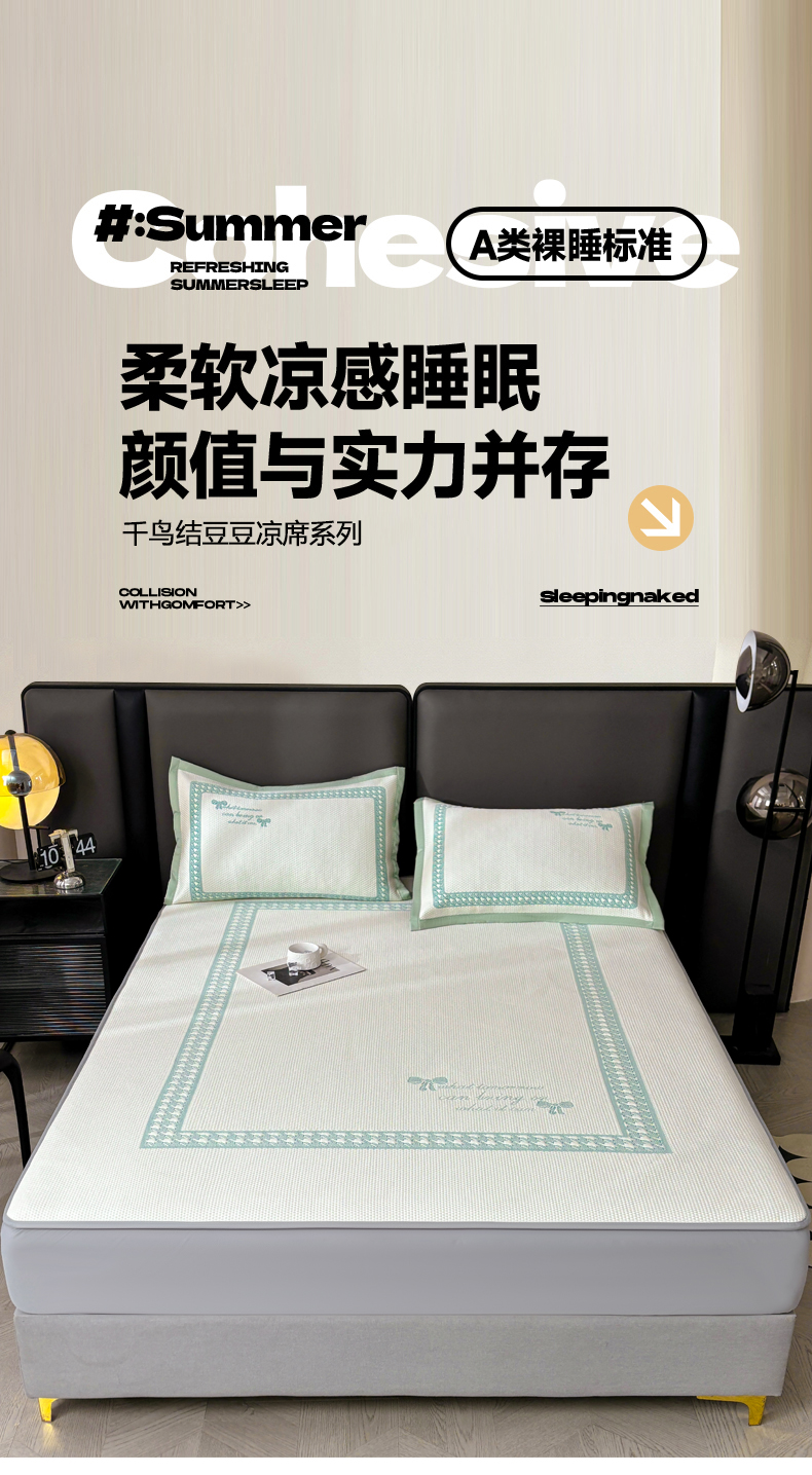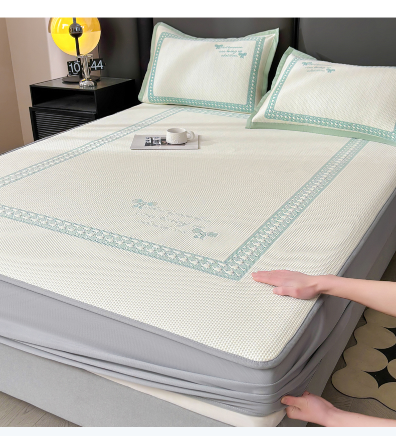 慕木家纺 2025新品A类高端大版高分子530克PE提花冰豆豆床席床笠千鸟结系列直播爆款(可供跨境压缩) 千鸟结-绿 床笠