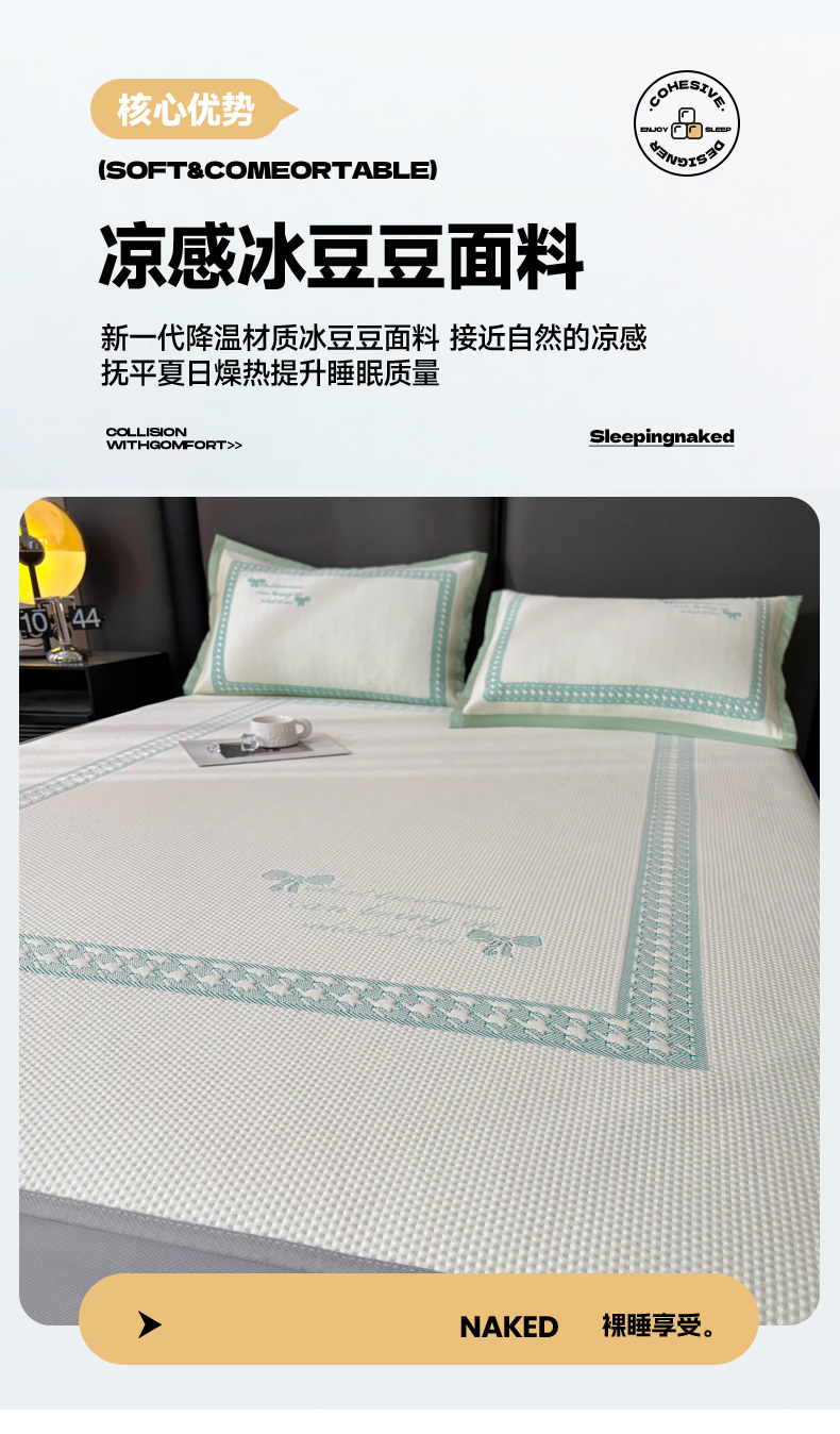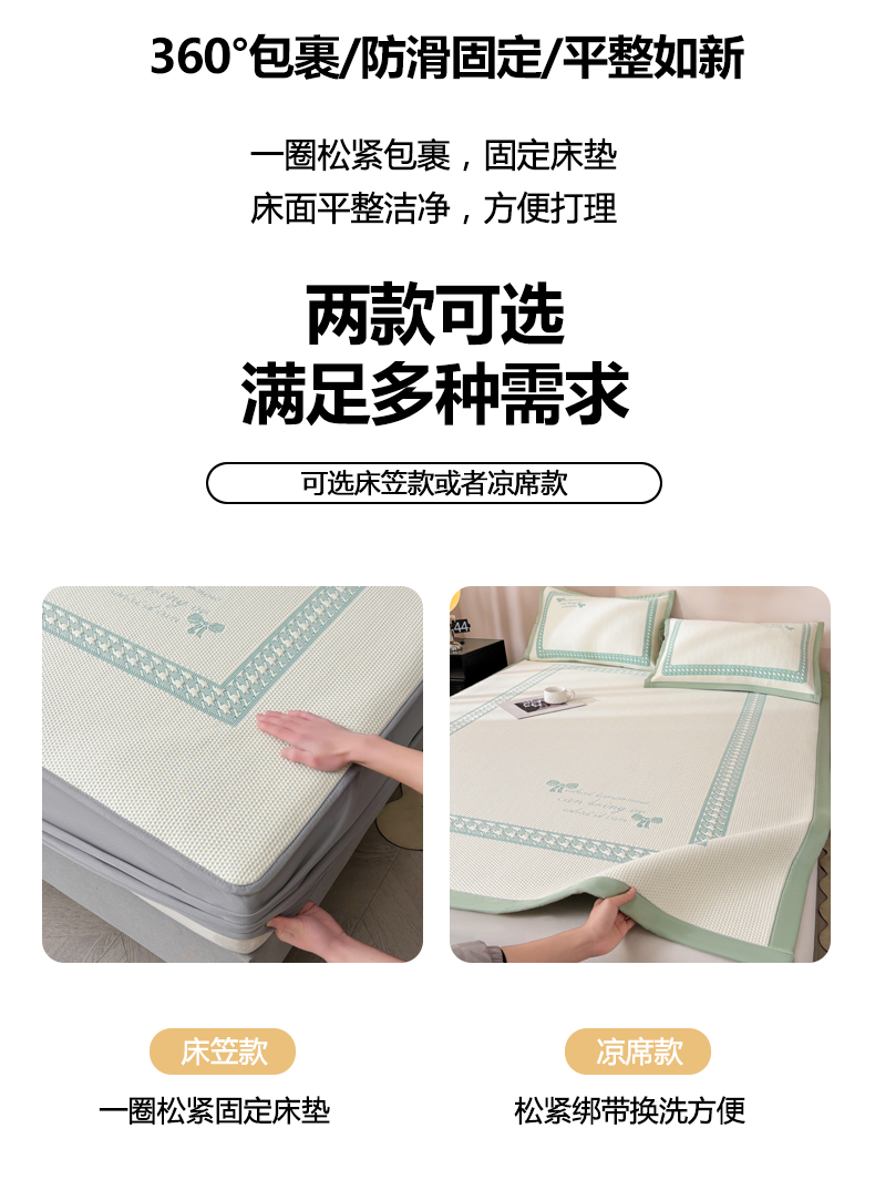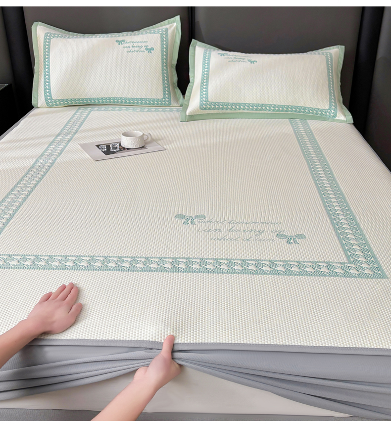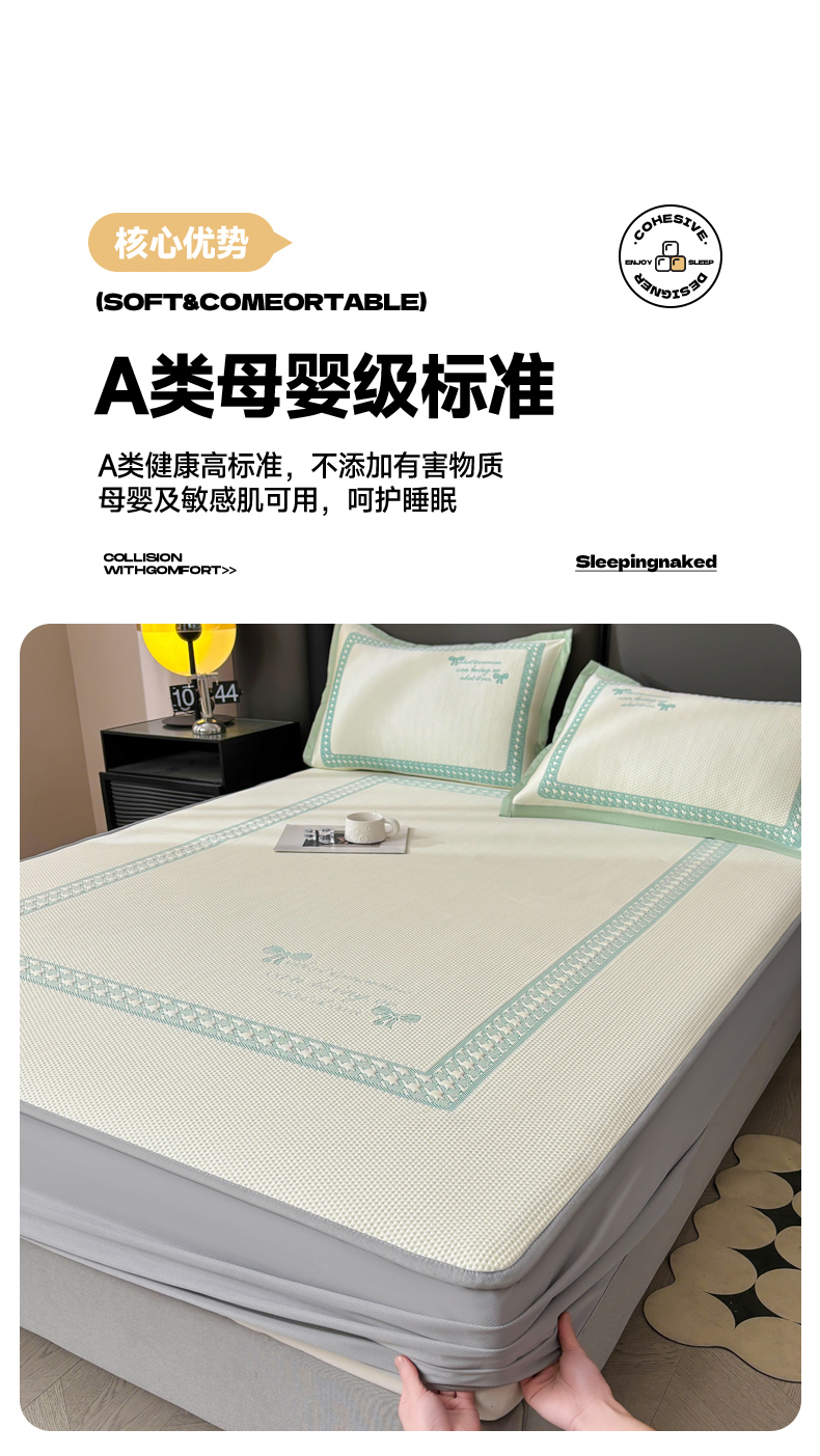 慕木家纺 2025新品A类高端大版高分子530克PE提花冰豆豆床席床笠千鸟结系列直播爆款(可供跨境压缩) 千鸟结-绿 床笠
