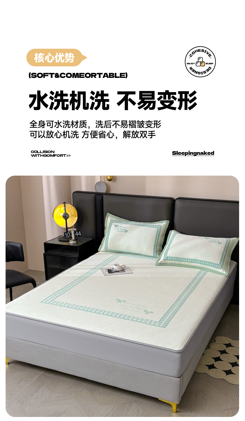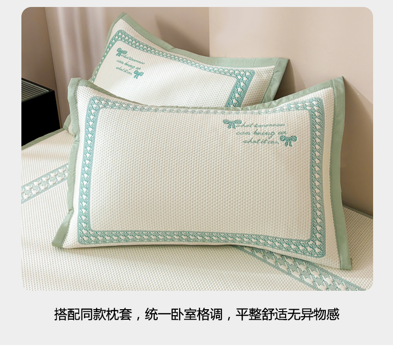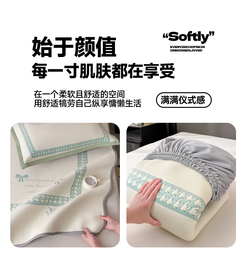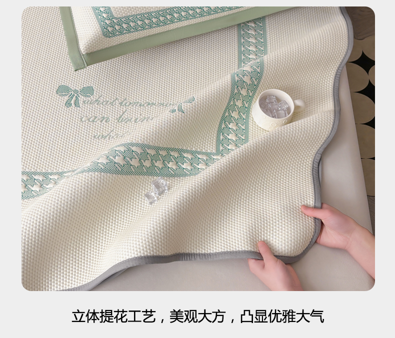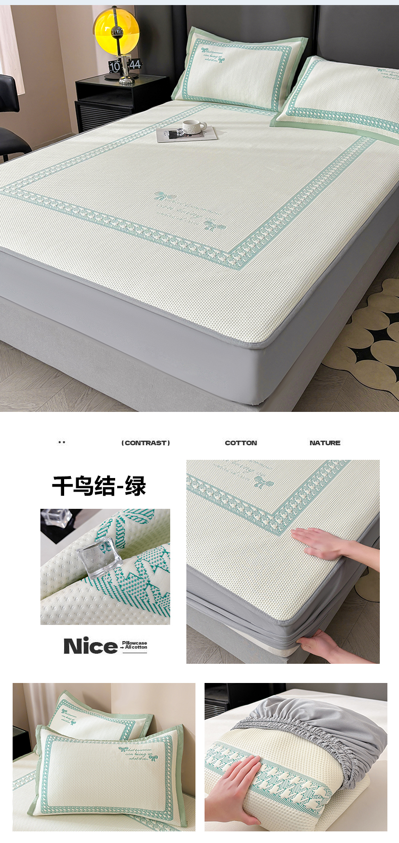 商品名称:慕木家纺 2025新品A类高端大版高分子530克PE提花冰豆豆床席床笠千鸟结系列直播爆款(可供跨境压缩) 千鸟结-绿 床笠