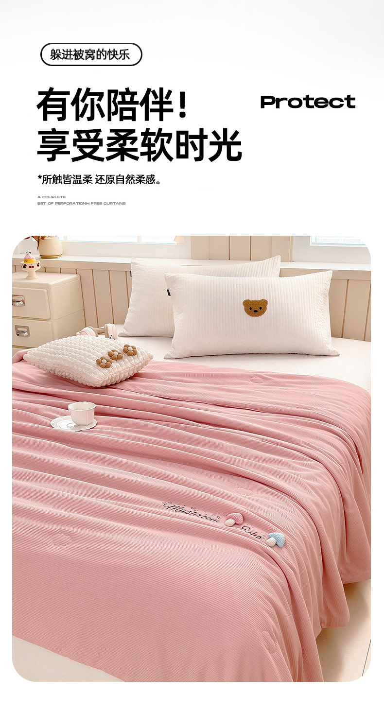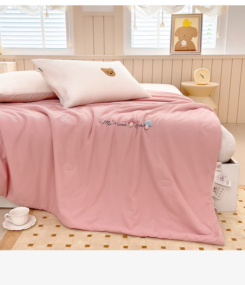 亿莱鑫 2025新款华夫格7A抗菌夏凉被 珊瑚粉
