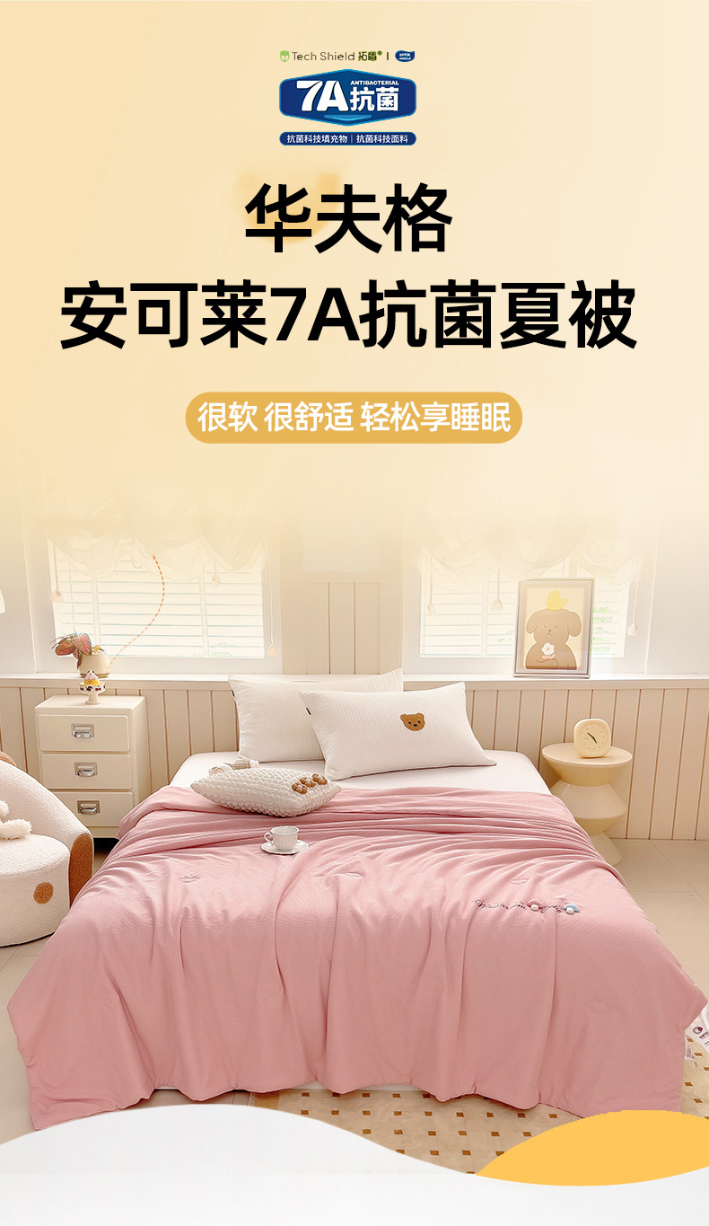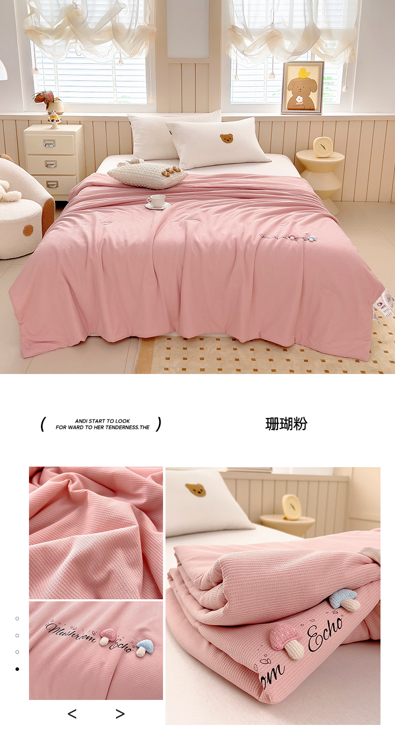 商品名称:亿莱鑫 2025新款华夫格7A抗菌夏凉被 珊瑚粉