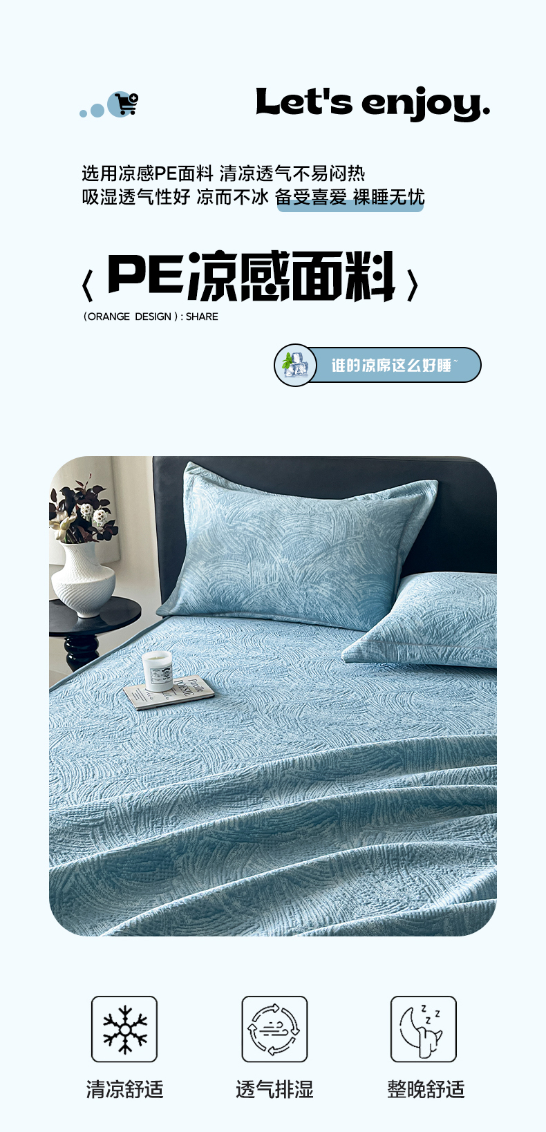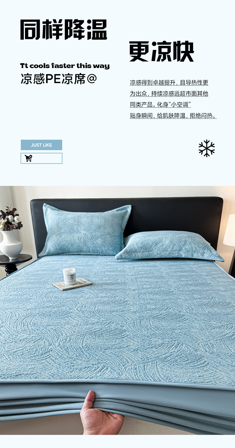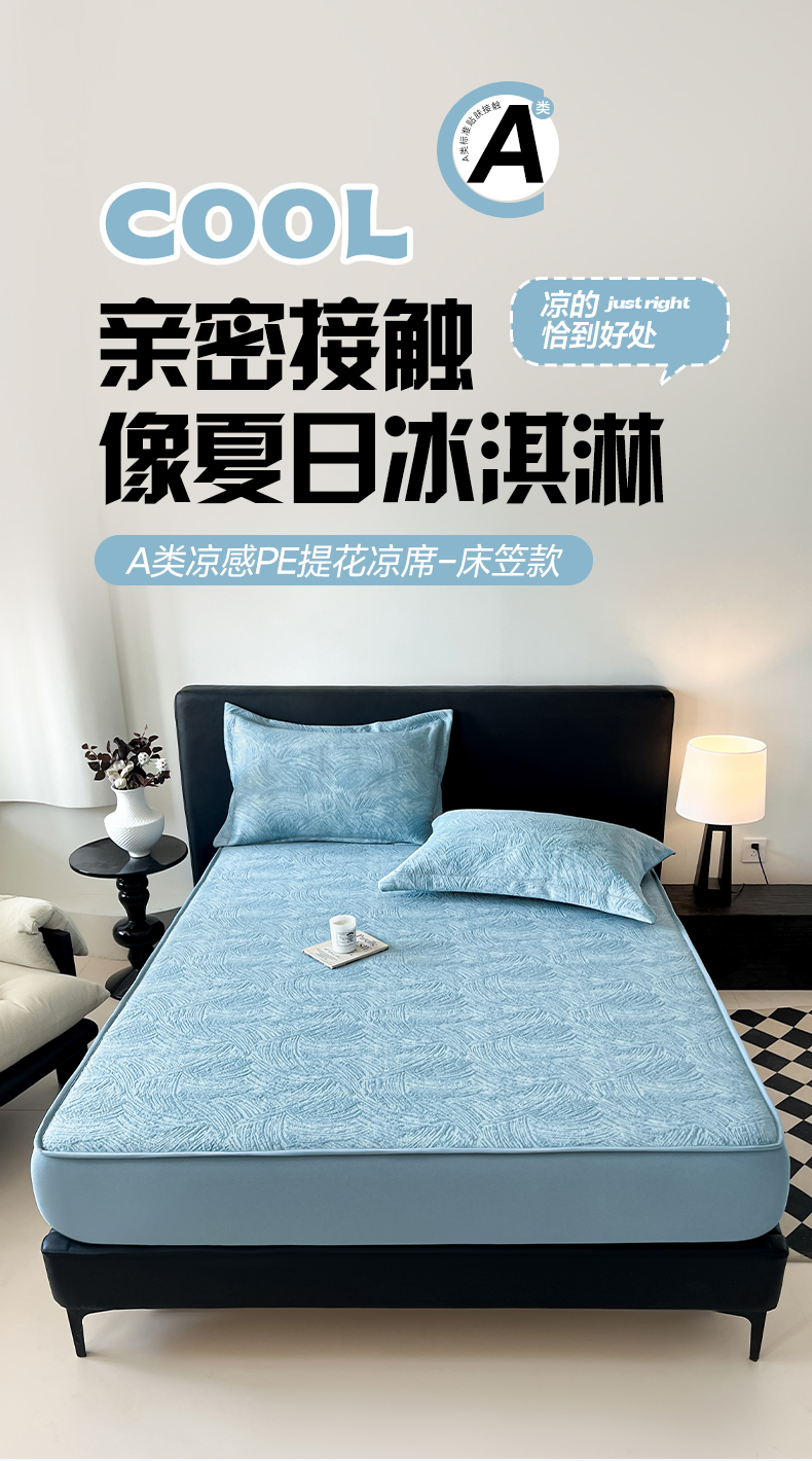 蓝邻家纺 2025新款PE提花床笠凉席-涂鸦系列 涂鸦-蓝