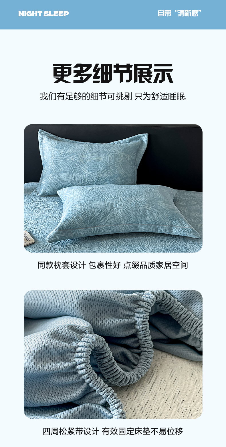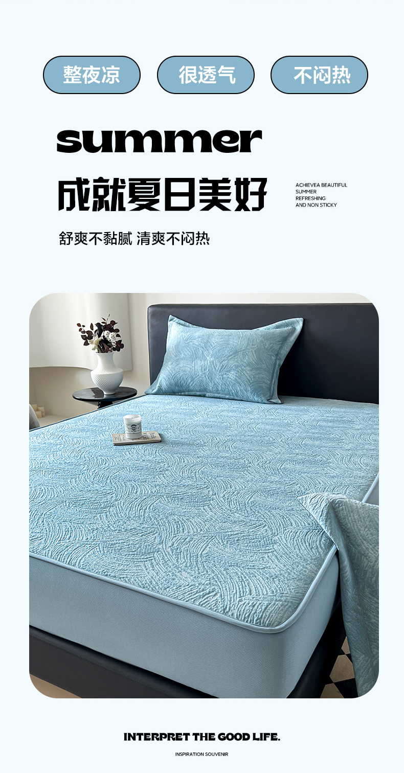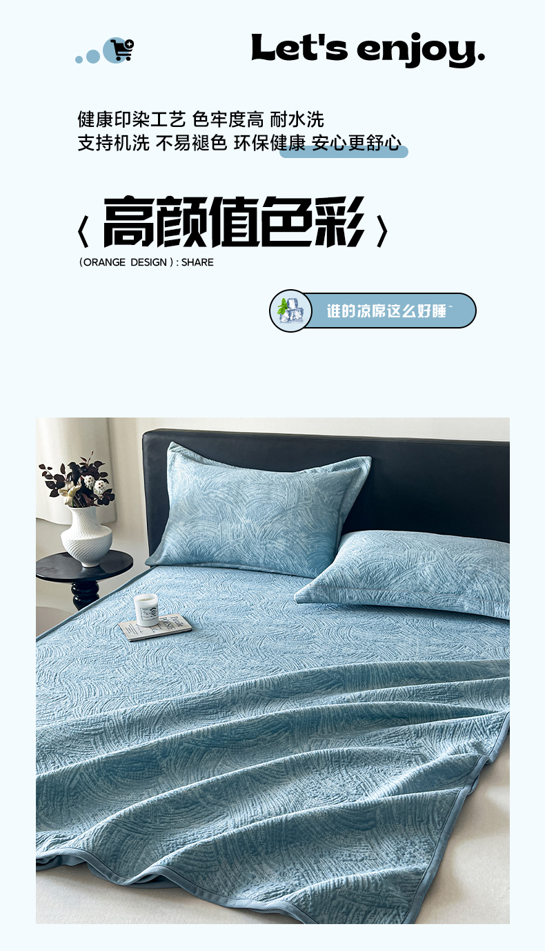 蓝邻家纺 2025新款PE提花床笠凉席-涂鸦系列 涂鸦-蓝