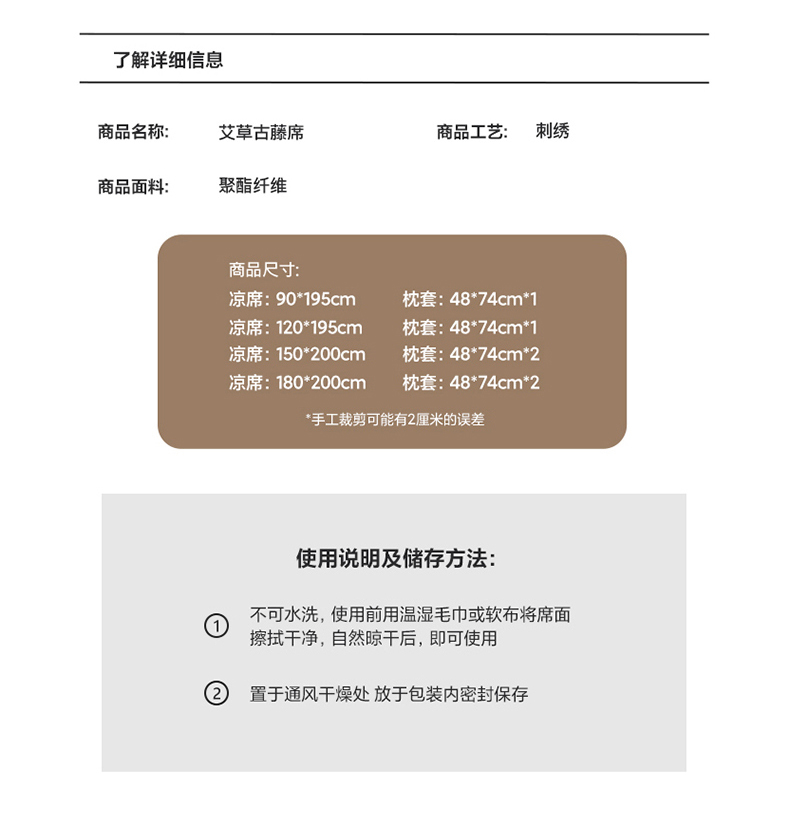 商品名称:(总)梵希良品家纺 2025新款艾草加厚藤席夏季双人席子可折叠凉席