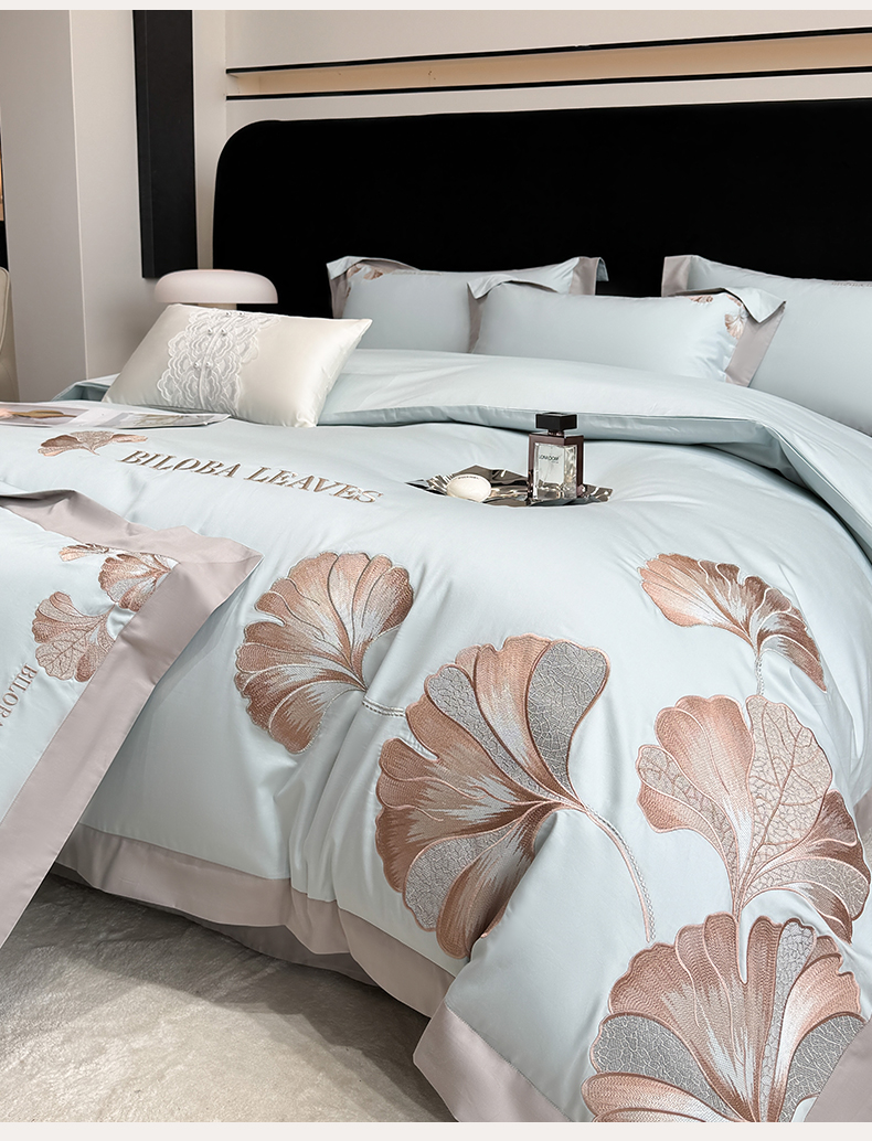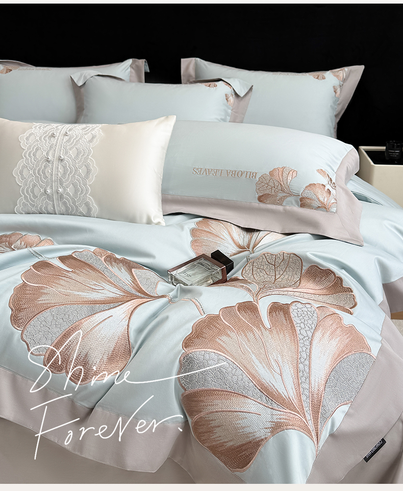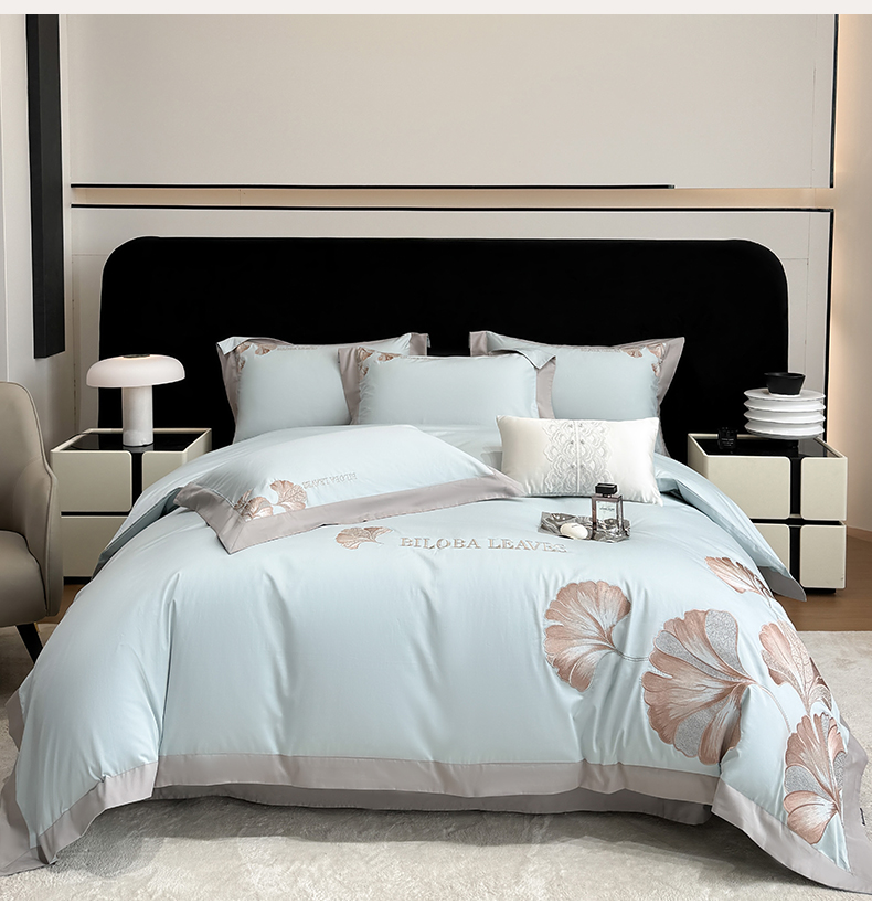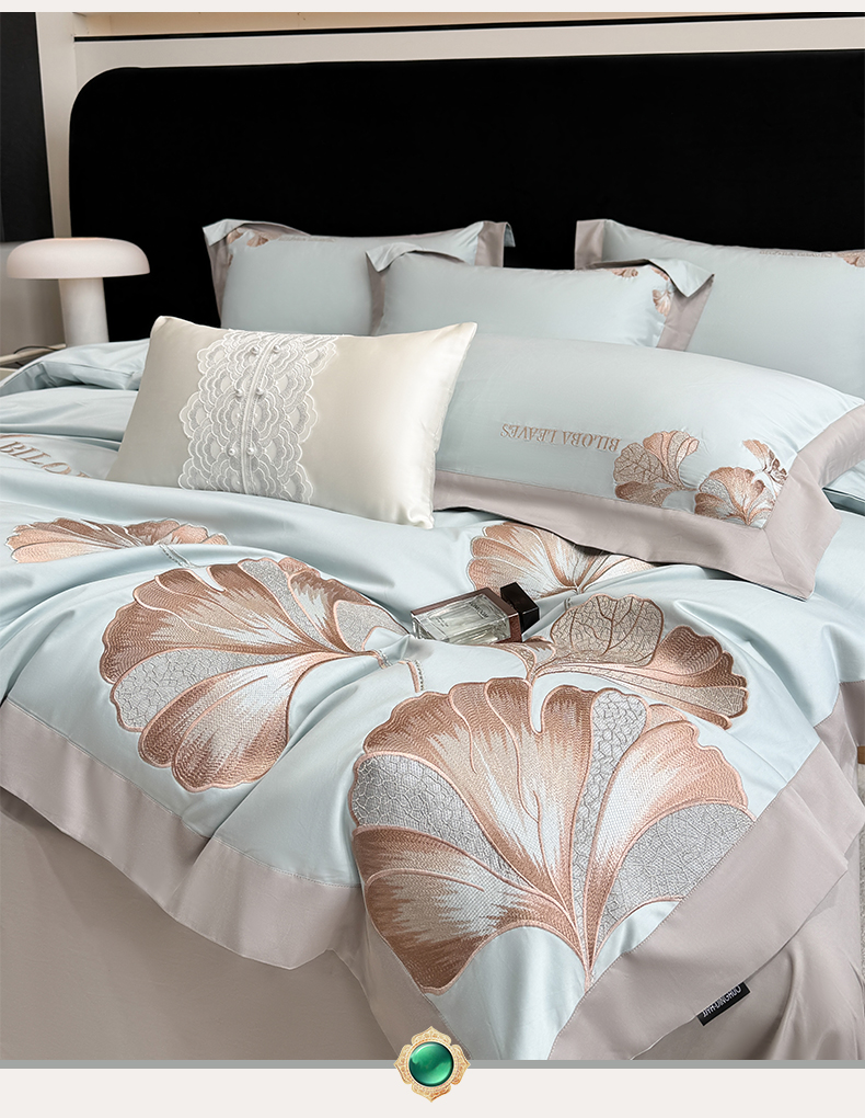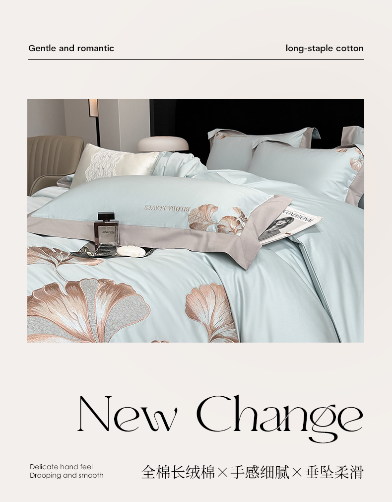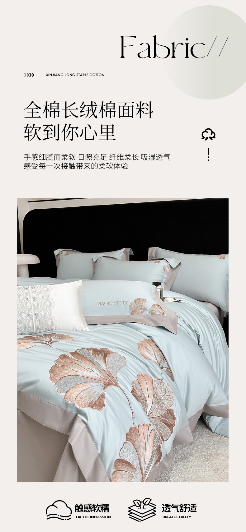 家居1号 2025新款a类长绒棉绣花四件套 金色银杏-苹果绿