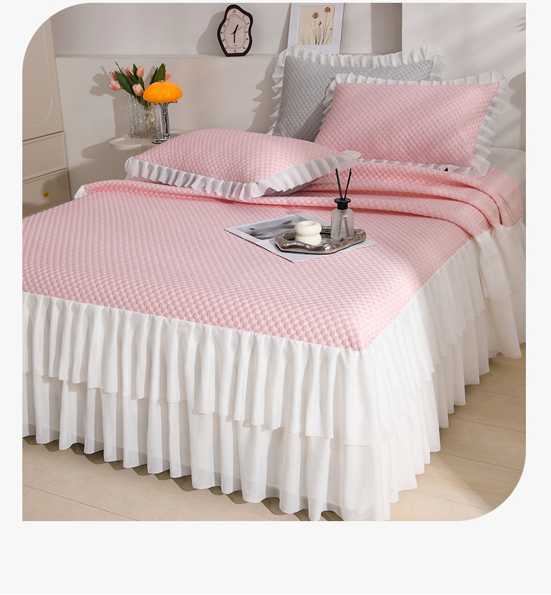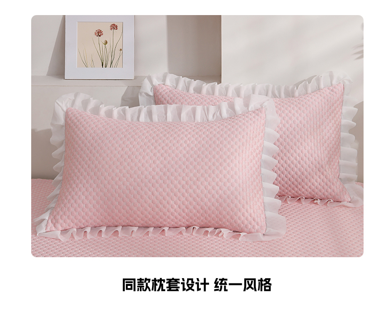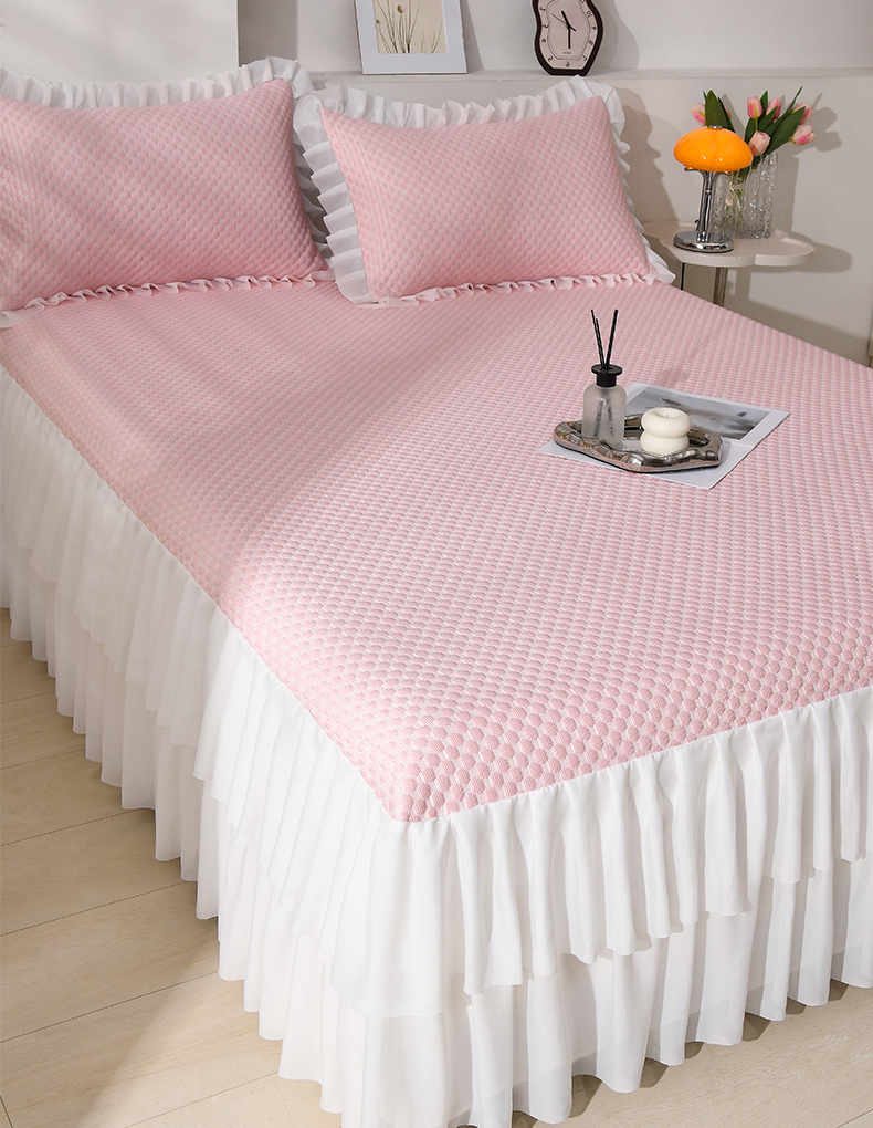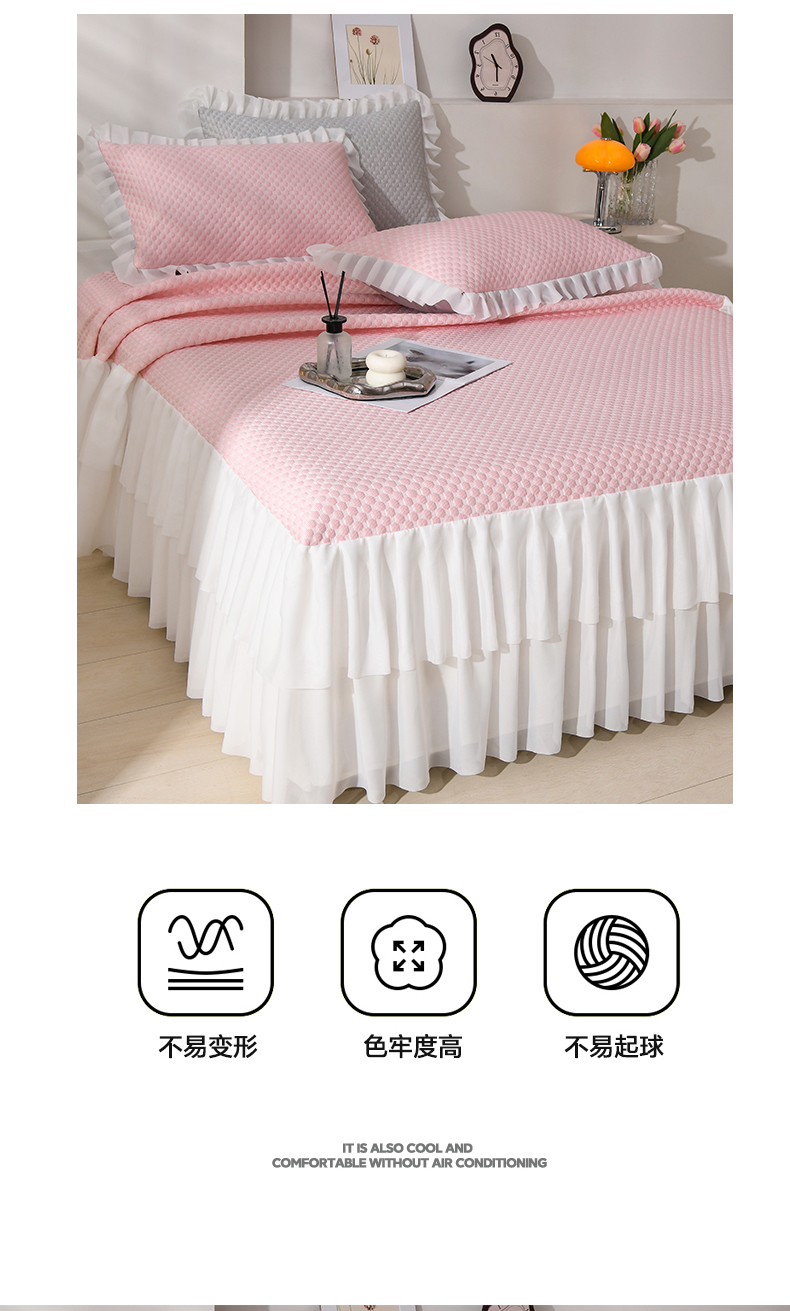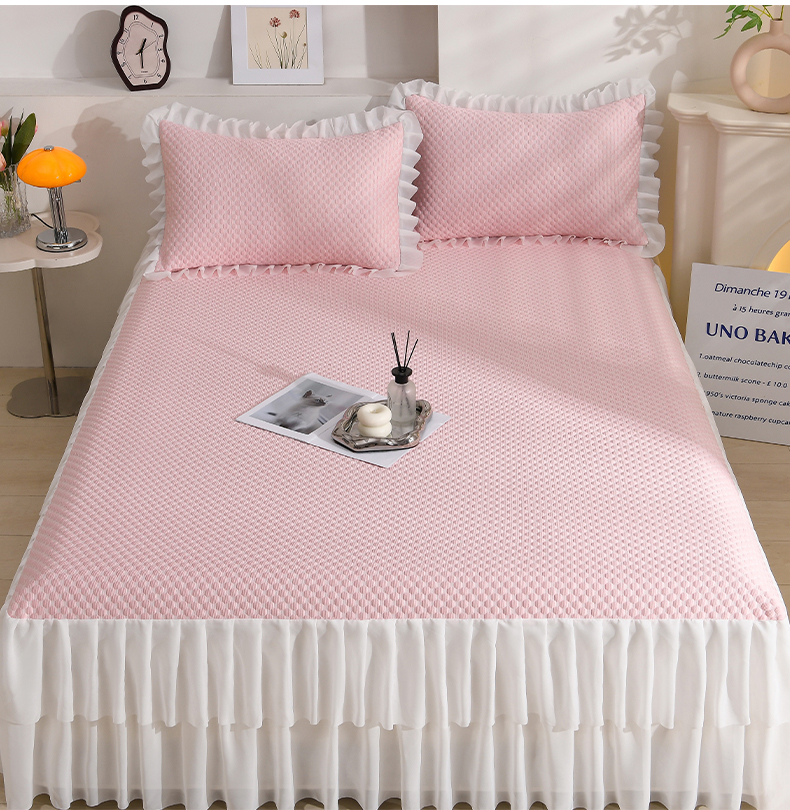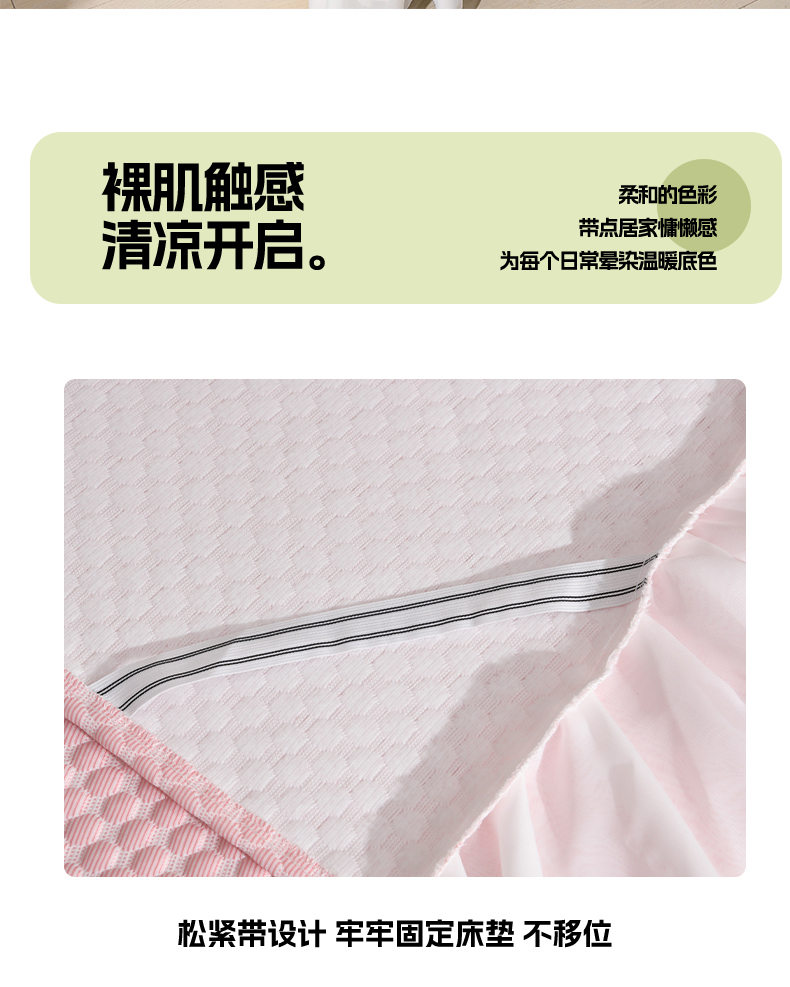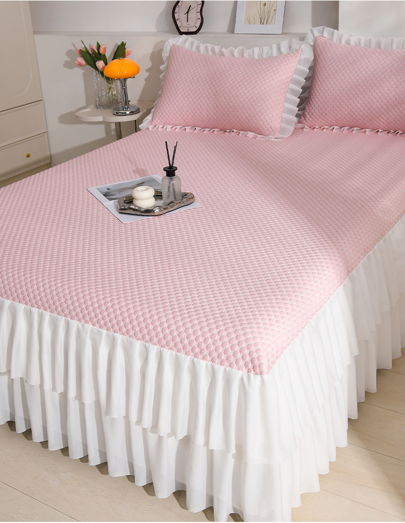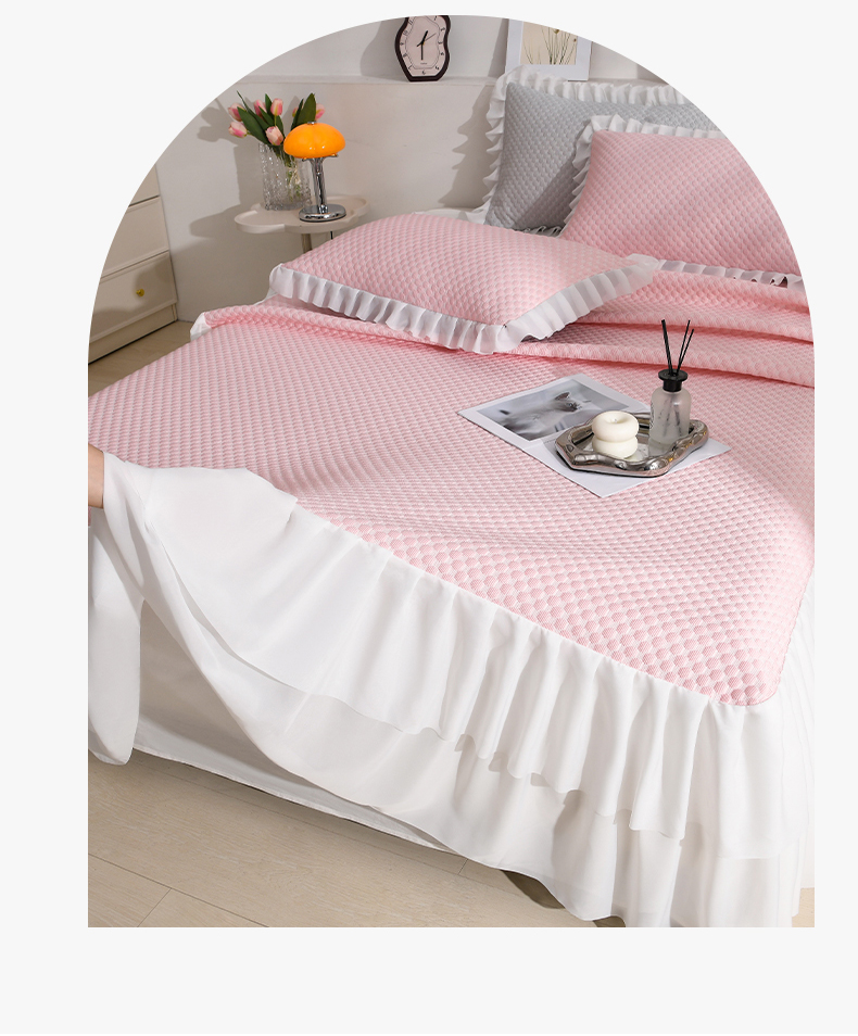 商品名称:绘萱家居 2025爆款冰凉豆豆凉席三件套床裙款冰丝软席子 冰凉豆豆-粉