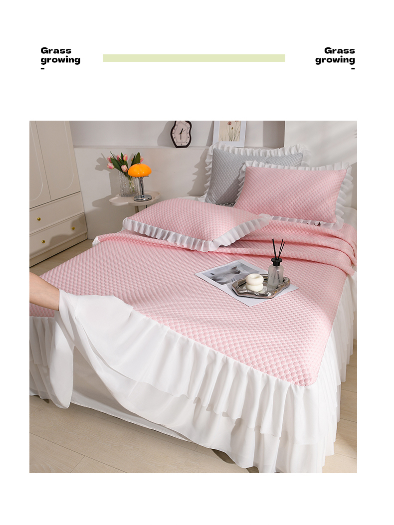 绘萱家居 2025爆款冰凉豆豆凉席三件套床裙款冰丝软席子 冰凉豆豆-粉