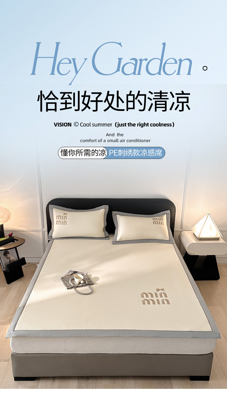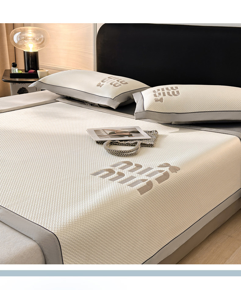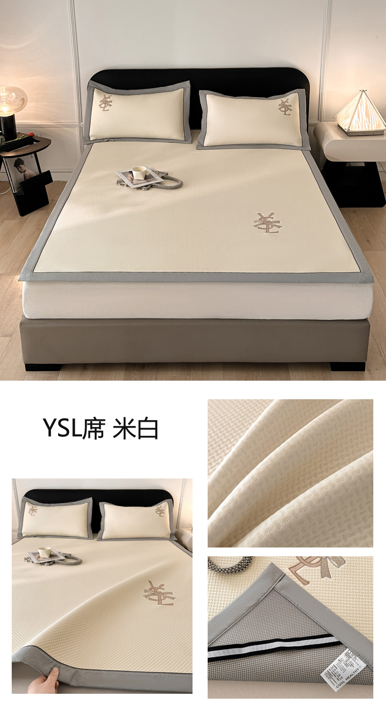 慕尚家纺 2025新款PE刺绣款minmin&ysl凉感席席子凉席 缪席 米白