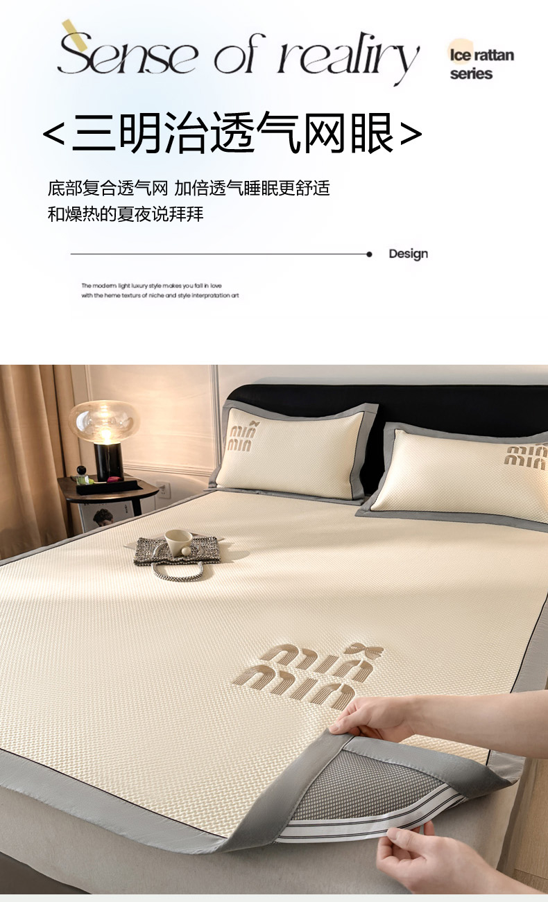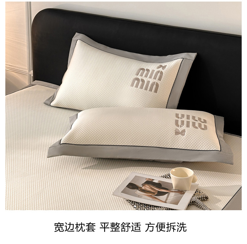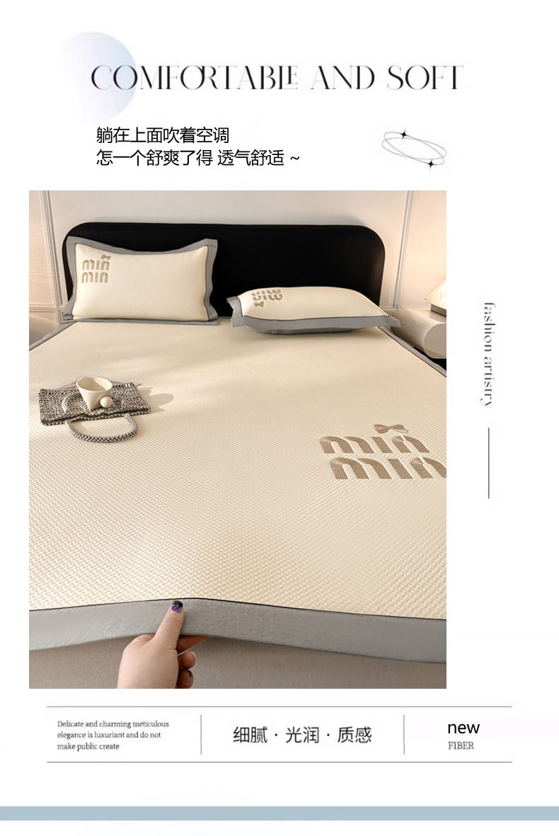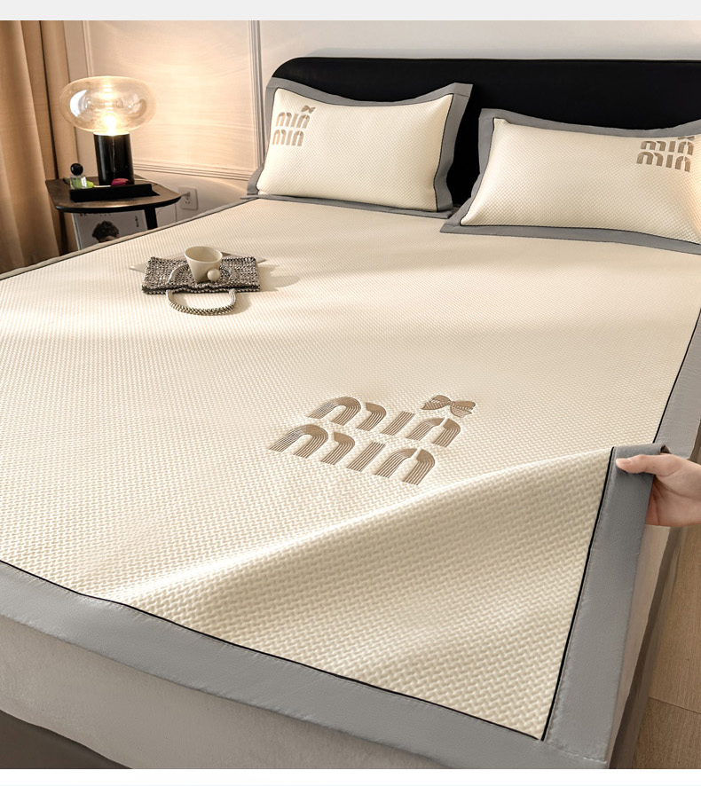 慕尚家纺 2025新款PE刺绣款minmin&ysl凉感席席子凉席 缪席 米白