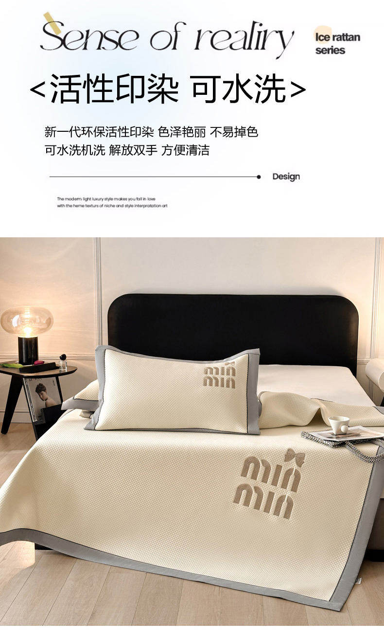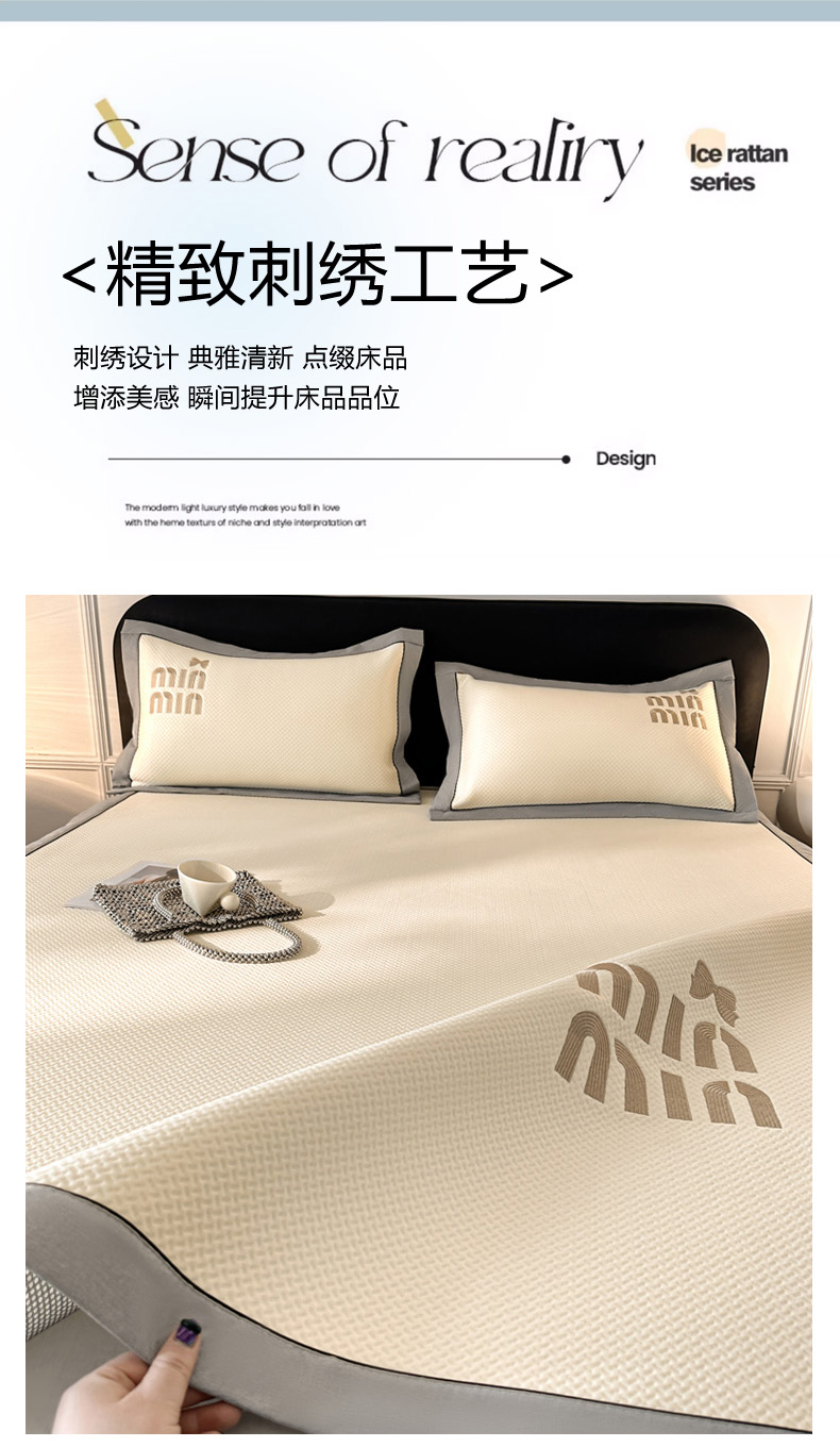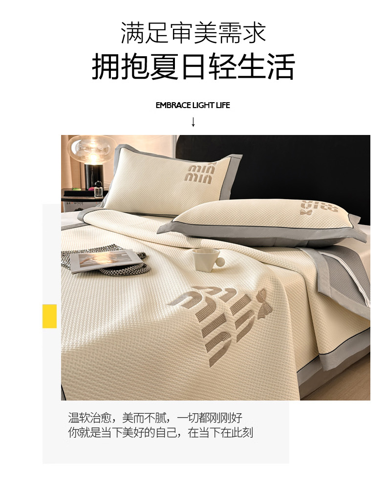 商品名称:慕尚家纺 2025新款PE刺绣款minmin&ysl凉感席席子凉席 缪席 米白