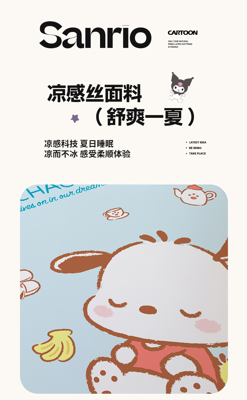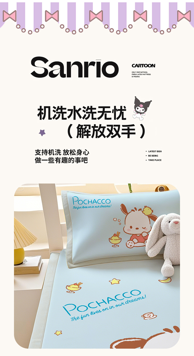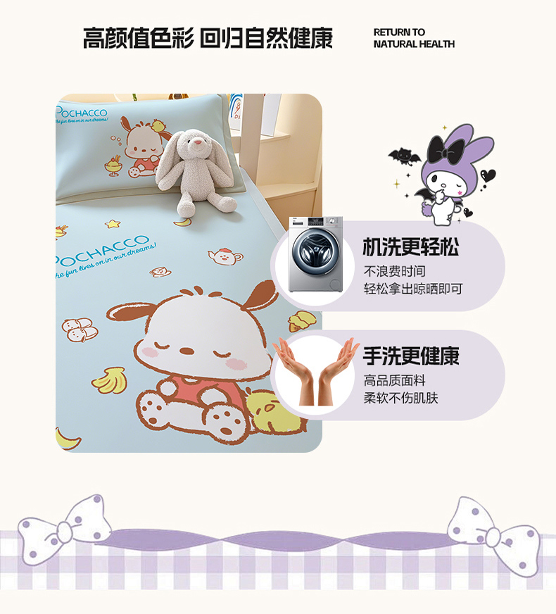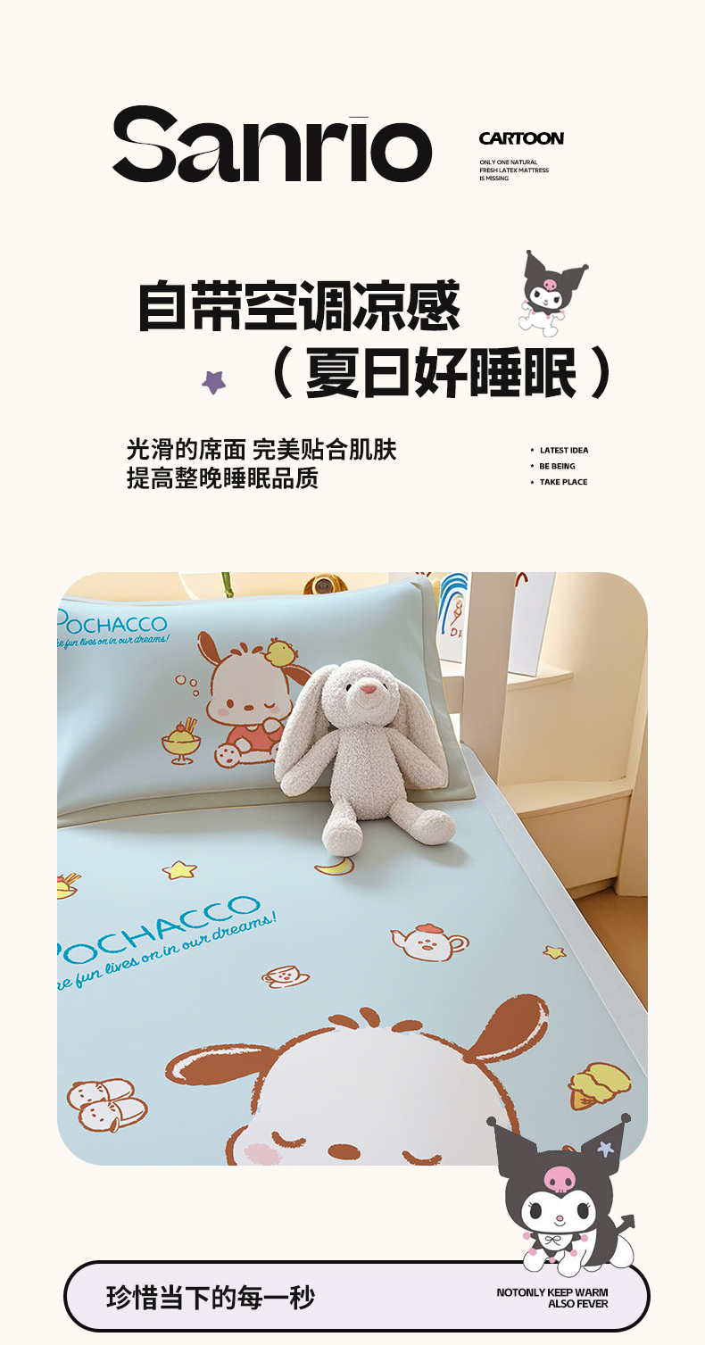 商品名称:博雅 2025春夏新款学生宿舍床三丽鸥冰丝凉席席子 甜品帕恰狗