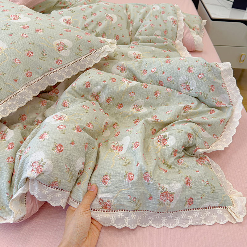商品名称:竹合家纺 2025新款云感皱皱四件套-镂空花边款法式 花边款-情人恰恰