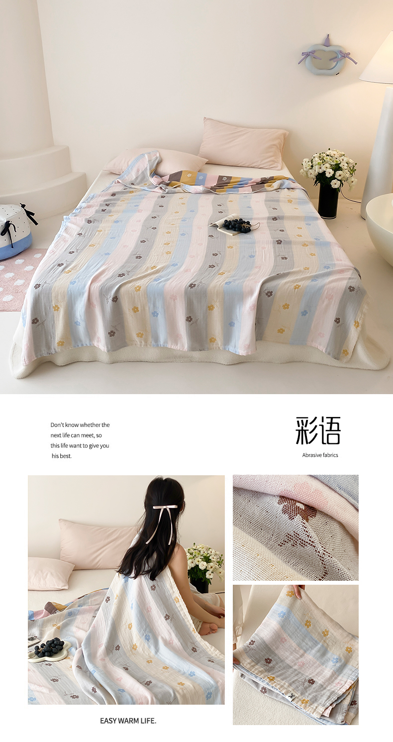 商品名称:麻依 2025新款色织提花天丝棉冷感毯系列 彩语