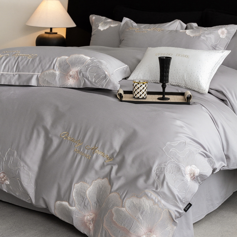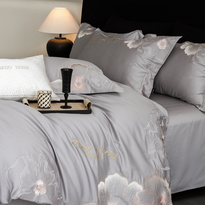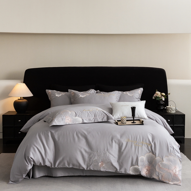 商品名称:馨蕊家居 2025新款高精密刺绣轻奢风全棉四件套-棉-花至 花至-高级灰