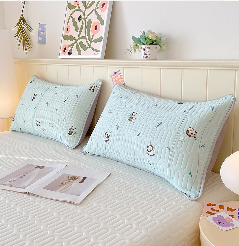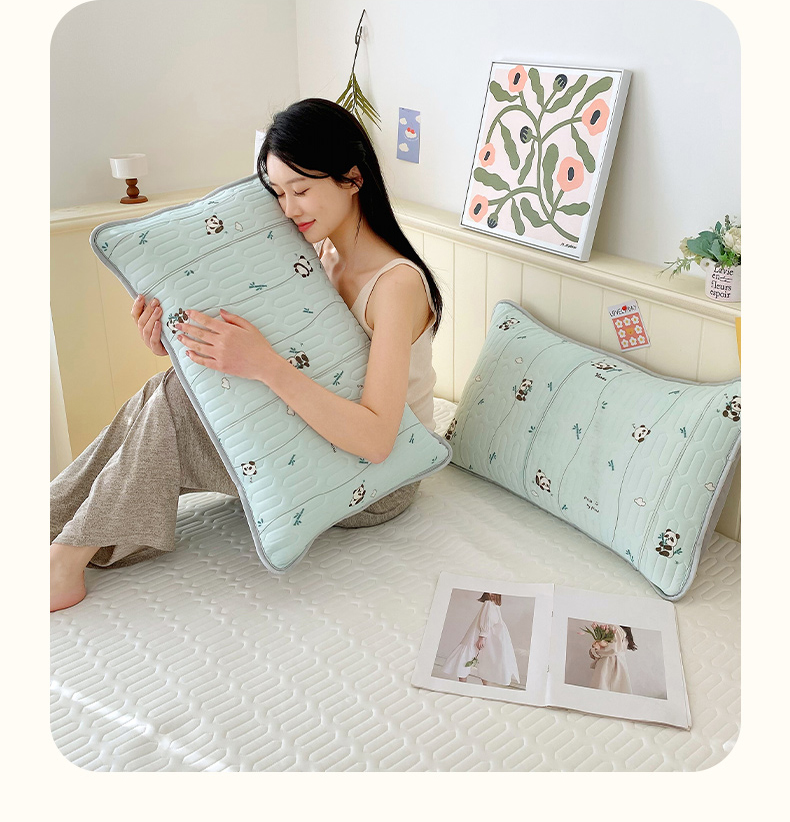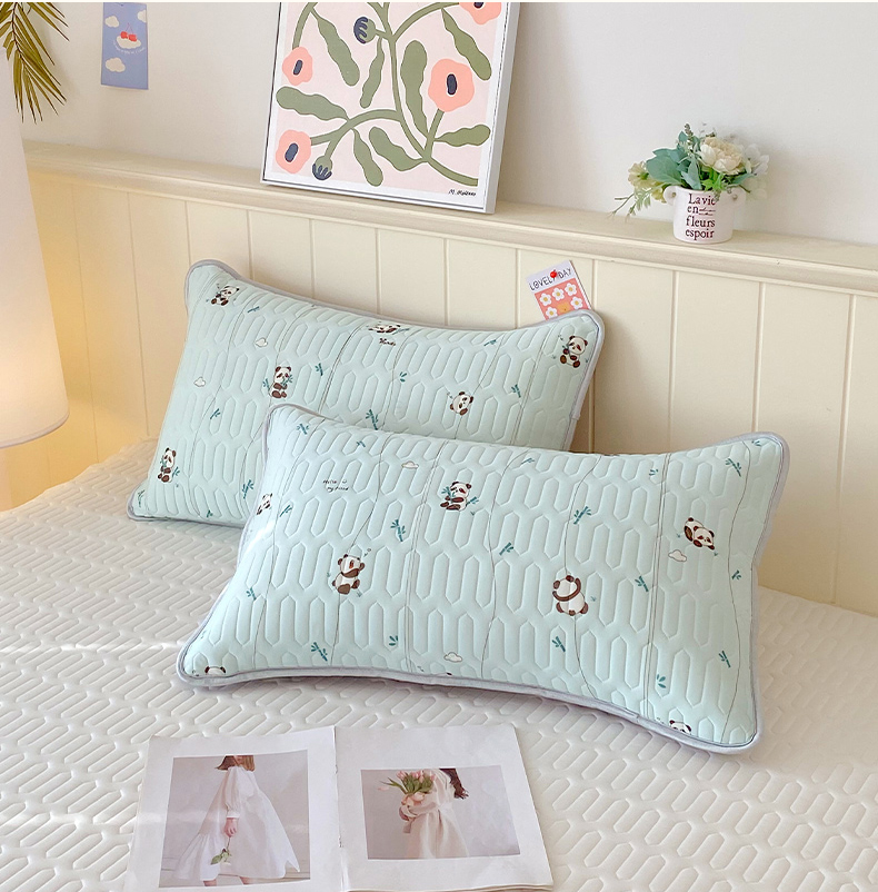 雨彤家纺 2025年新款A类凉感丝乳胶单人枕套 熊猫宝宝-湖蓝