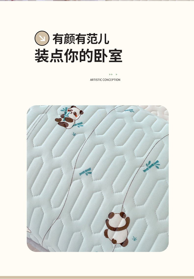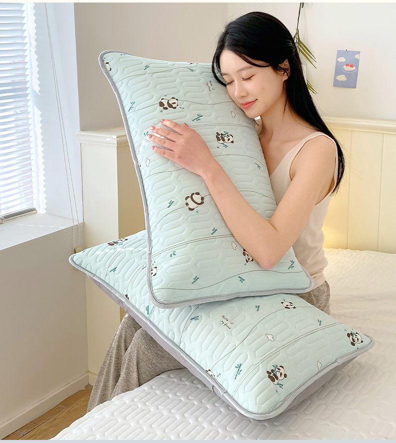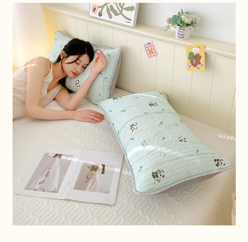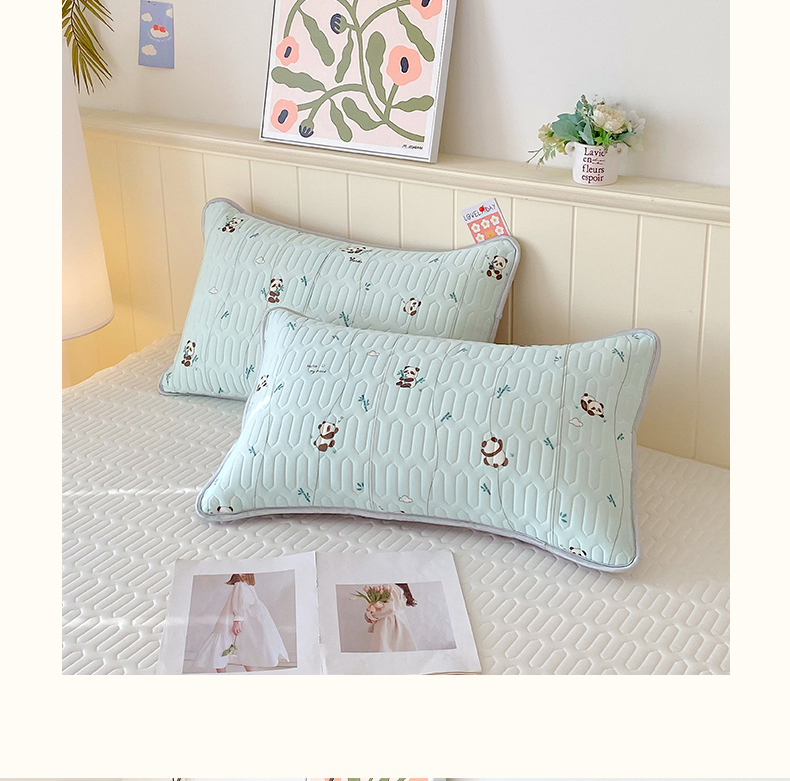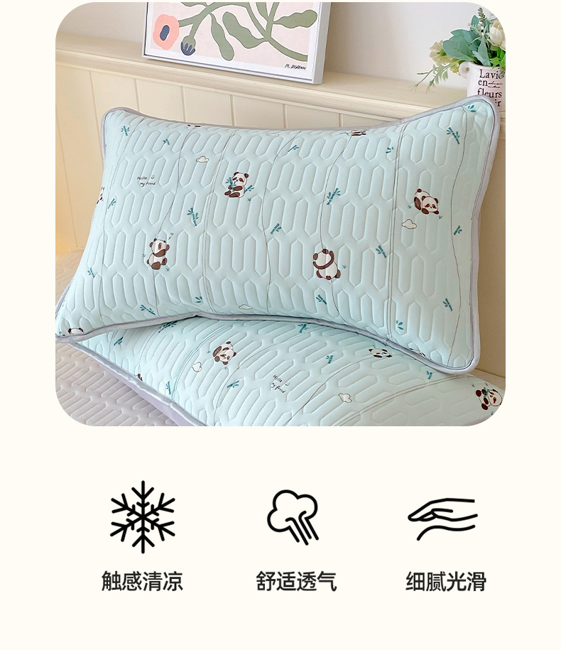 商品名称:雨彤家纺 2025年新款A类凉感丝乳胶单人枕套 熊猫宝宝-湖蓝