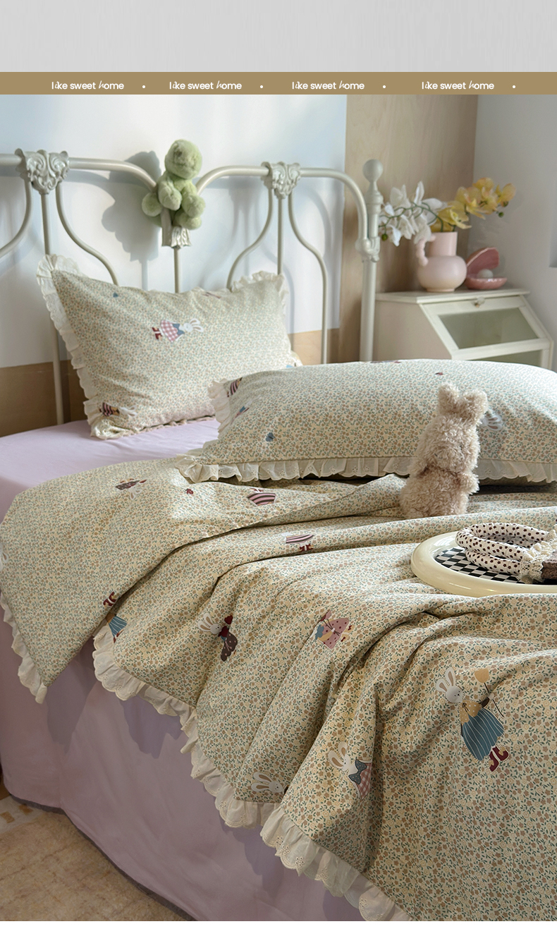 商品名称:绫韵家纺 2025新品夏季韩式浪漫小花边空调被夏被薄被子套件系列 百丽兔