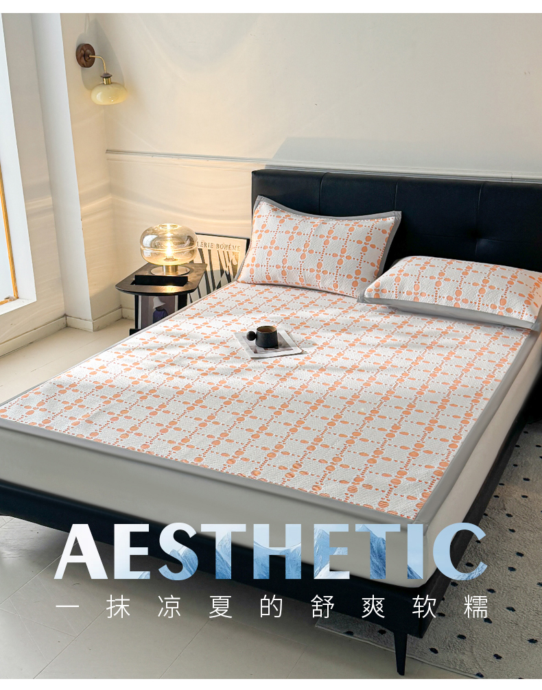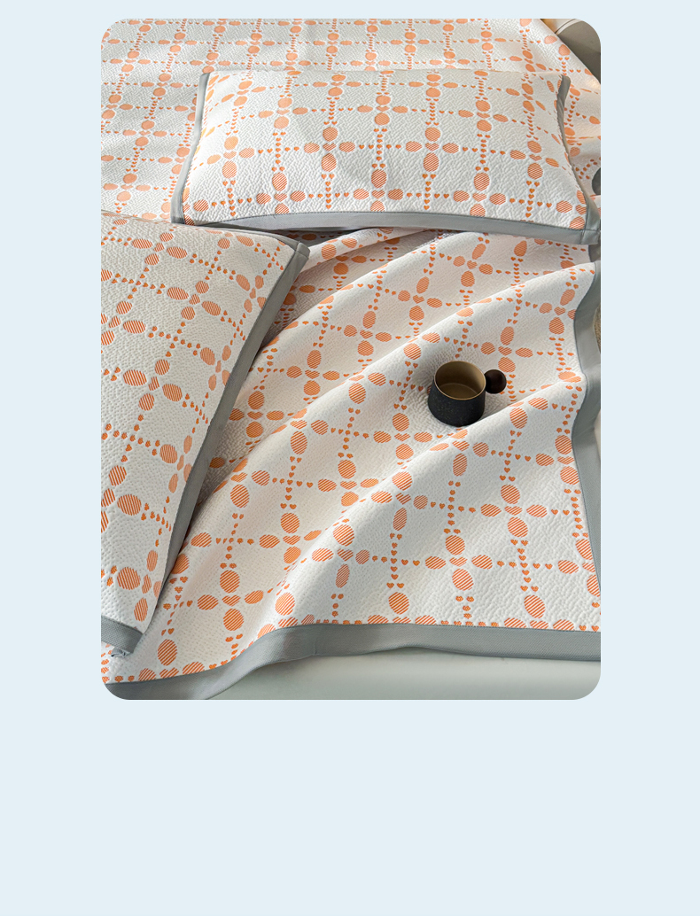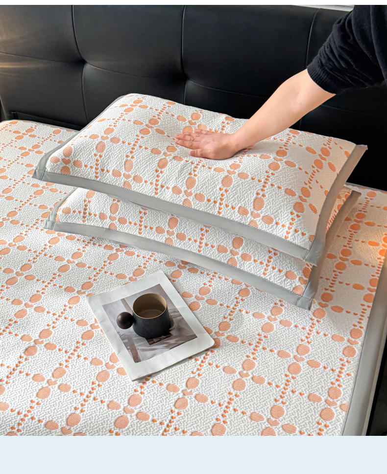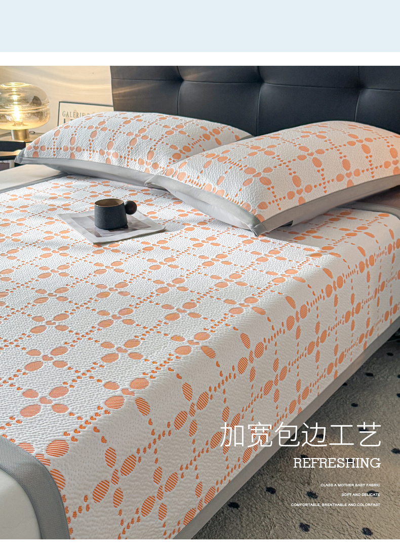 商品名称:LIFE.丽芙 2025春夏季新品A类针织提花冰凉豆豆凉感软席子平铺绑带款冰丝凉席三件套(450克)-风格一 维塔-橘