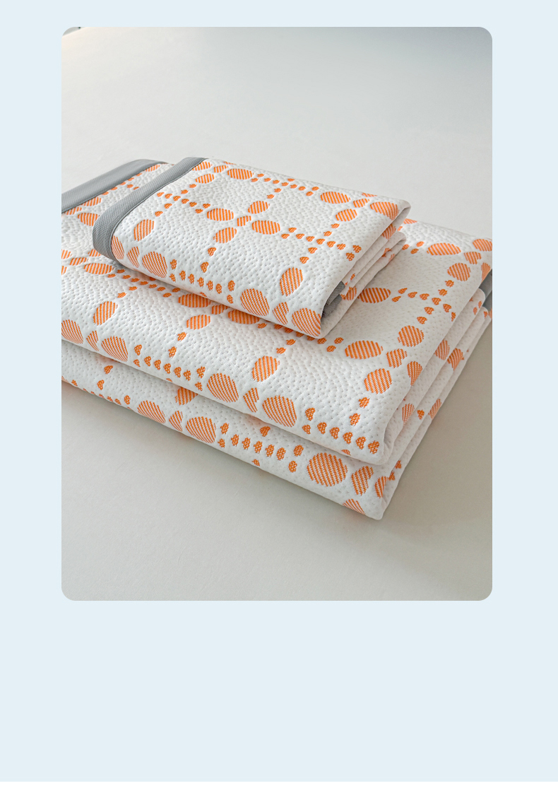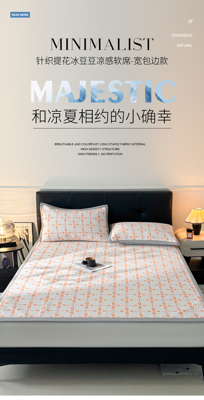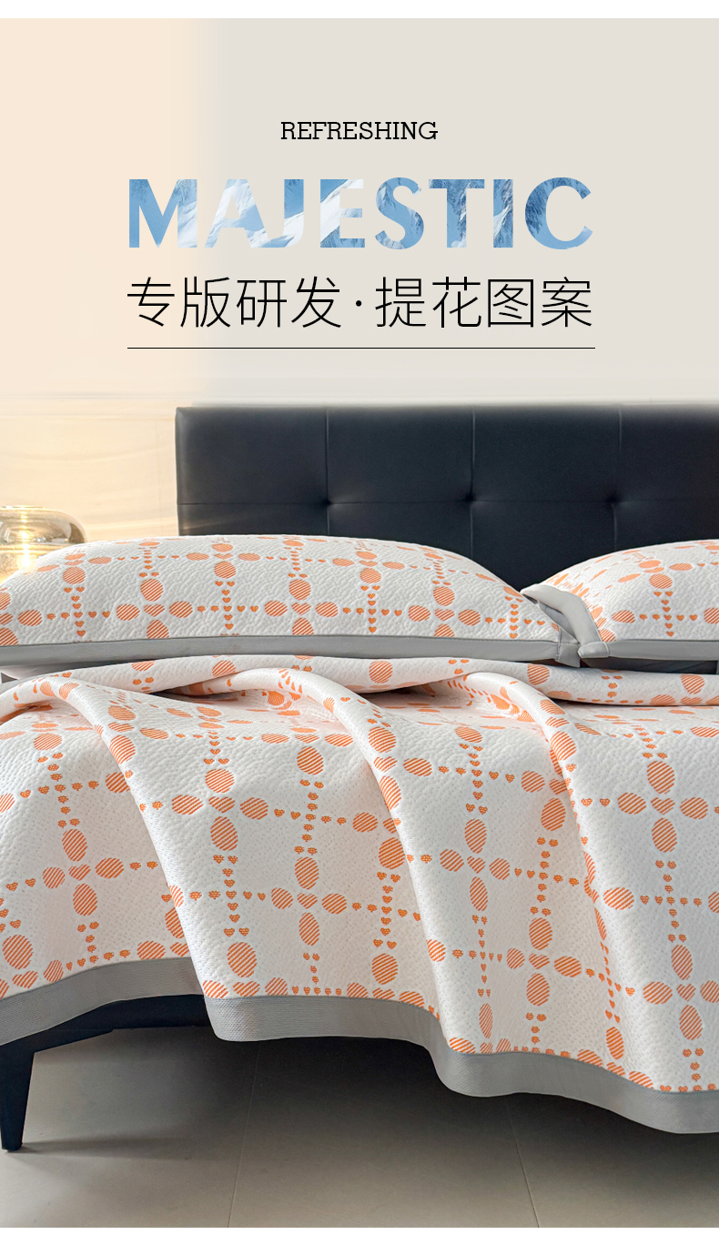 商品名称:LIFE.丽芙 2025春夏季新品A类针织提花冰凉豆豆凉感软席子平铺绑带款冰丝凉席三件套(450克)-风格一 维塔-橘