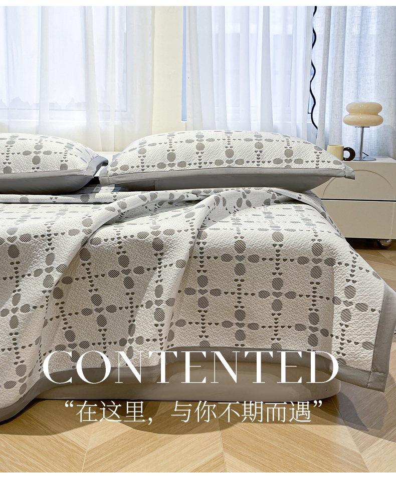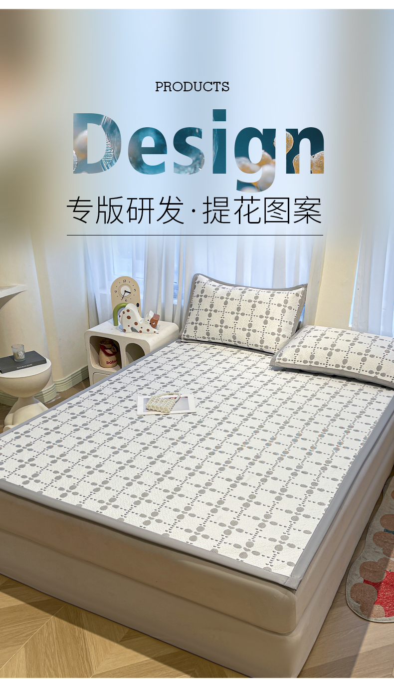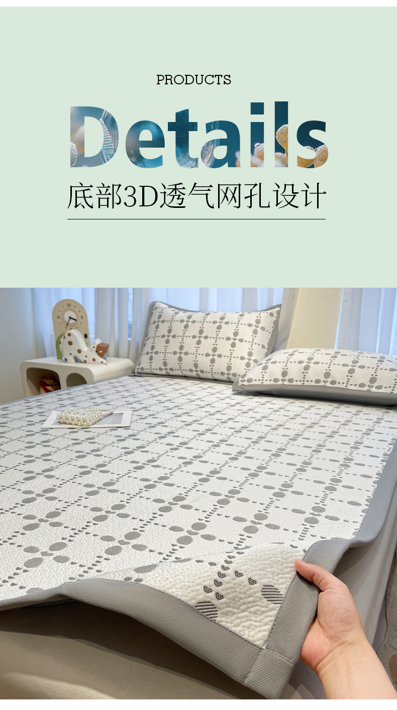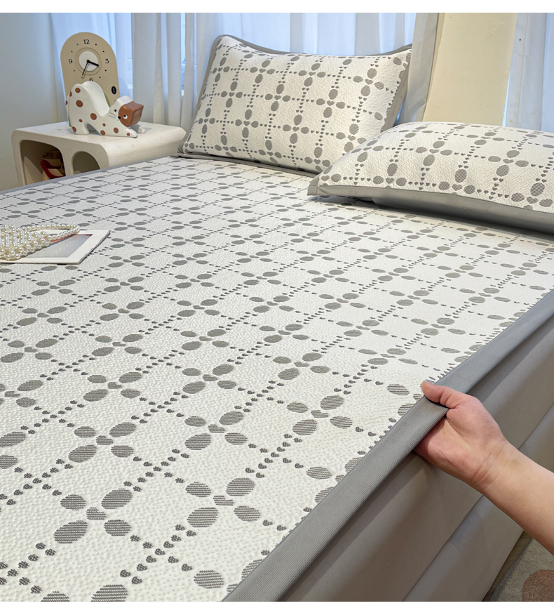 商品名称:LIFE.丽芙 2025春夏季新品A类针织提花冰凉豆豆凉感软席子平铺绑带款冰丝凉席三件套(450克)-风格二 维塔-灰