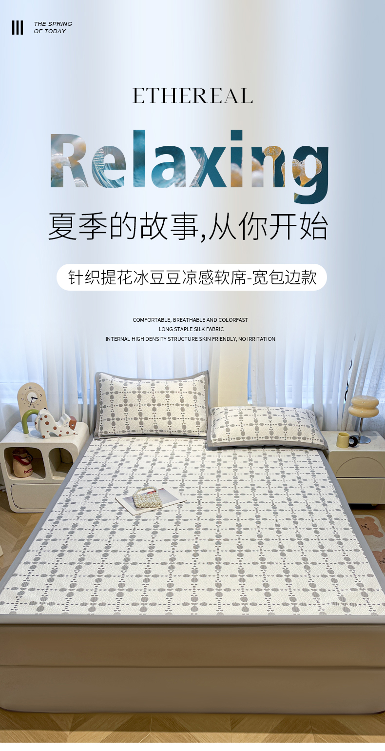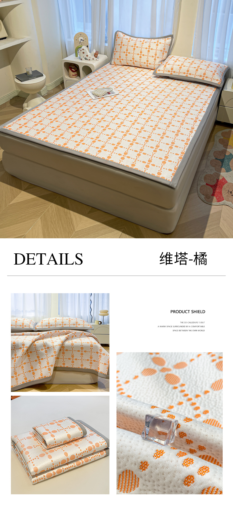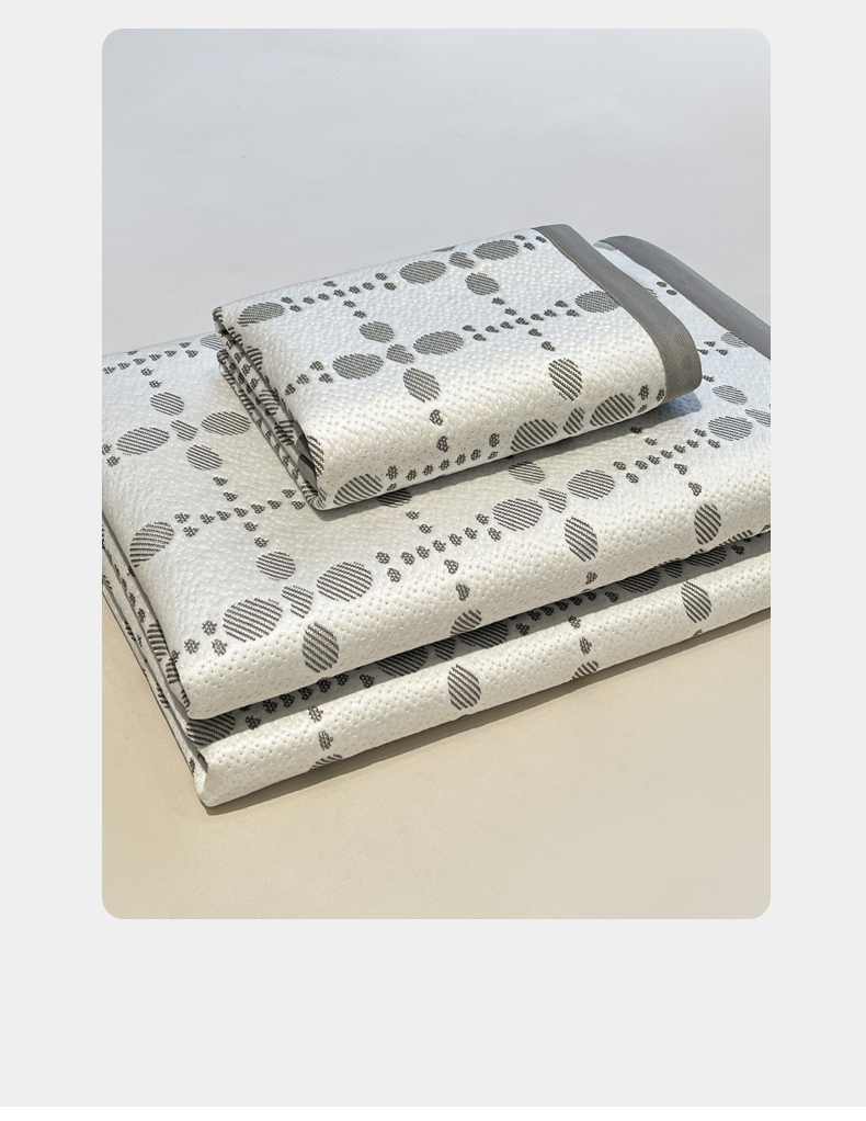 商品名称:LIFE.丽芙 2025春夏季新品A类针织提花冰凉豆豆凉感软席子平铺绑带款冰丝凉席三件套(450克)-风格二 维塔-灰