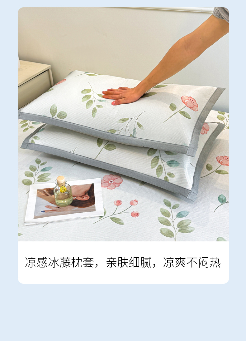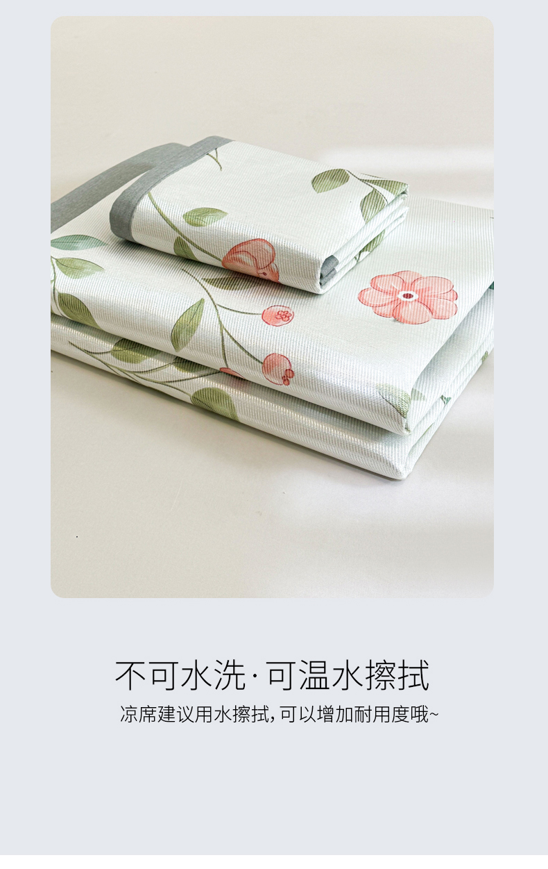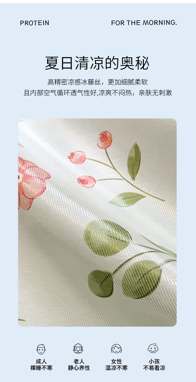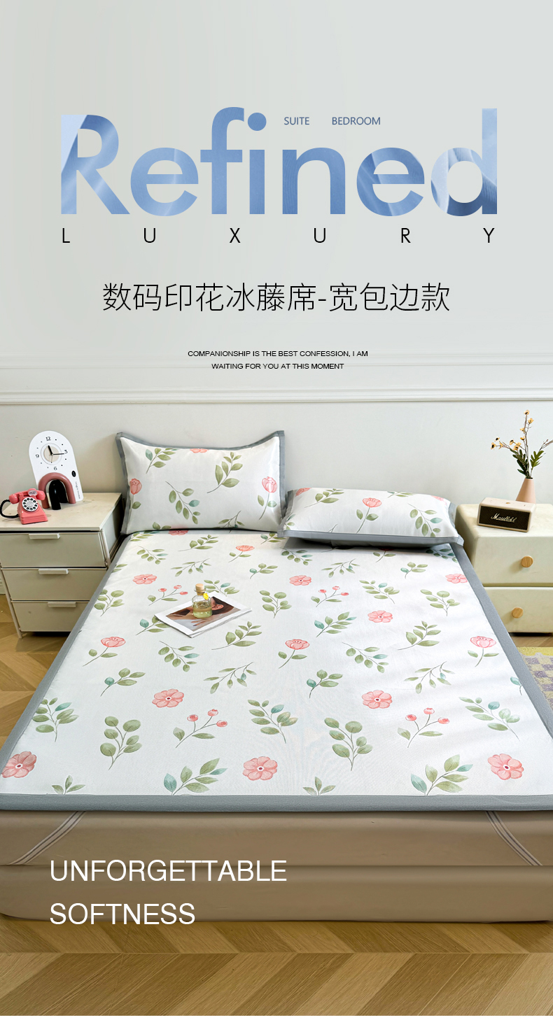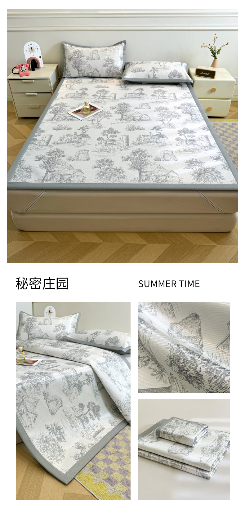 商品名称:LIFE.丽芙 2025春夏季新品数码印花冰藤凉席平铺冰丝凉席印花小清新绑带款三件套(风格二) 莫妮卡