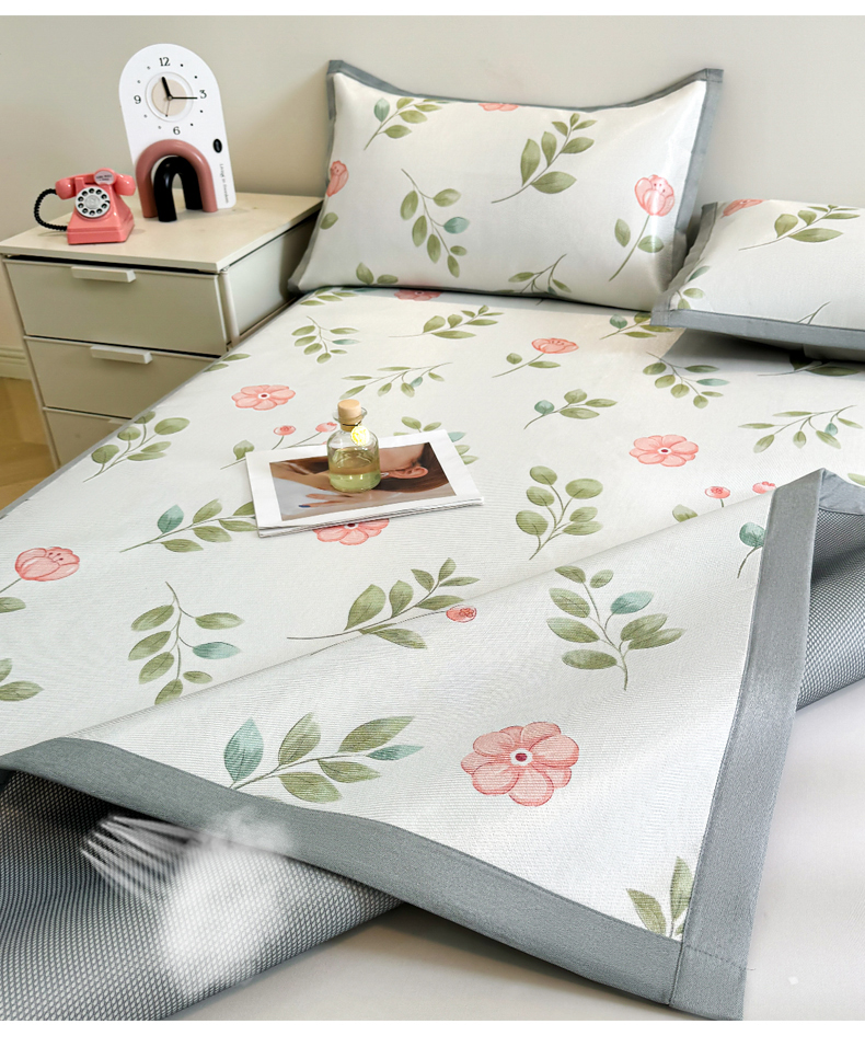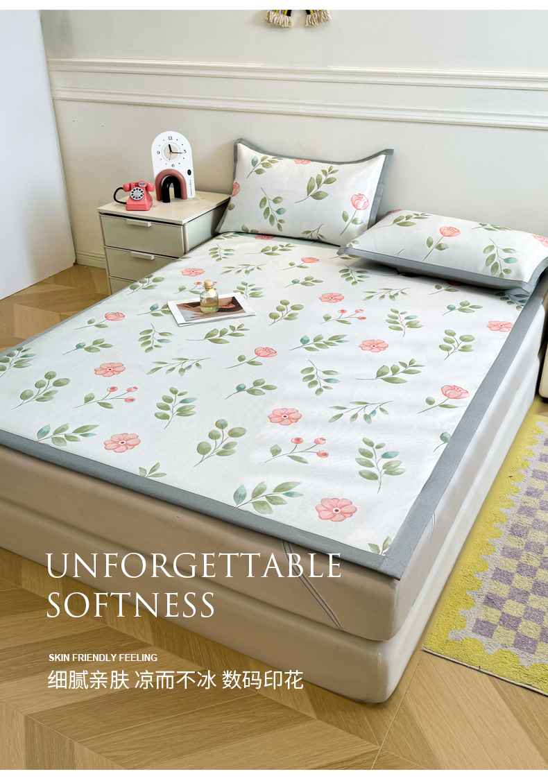 LIFE.丽芙 2025春夏季新品数码印花冰藤凉席平铺冰丝凉席印花小清新绑带款三件套(风格二) 莫妮卡