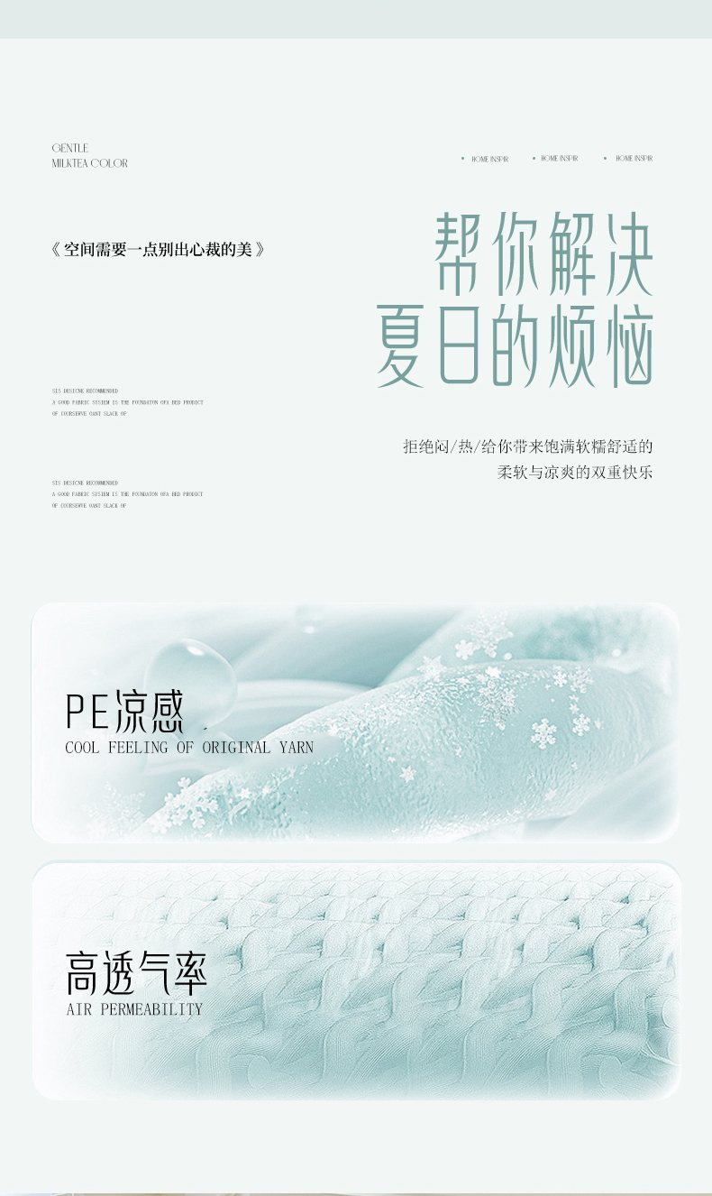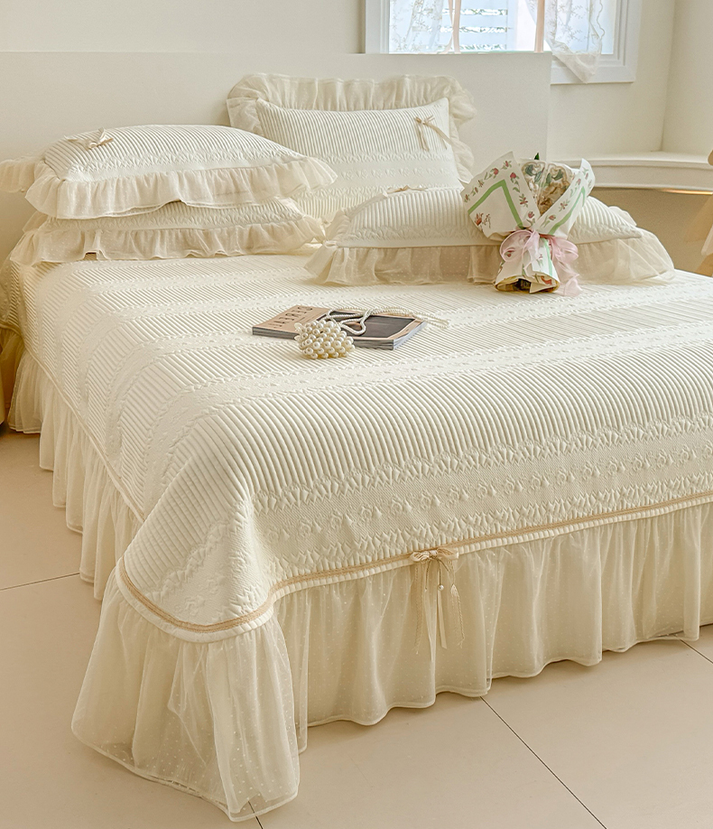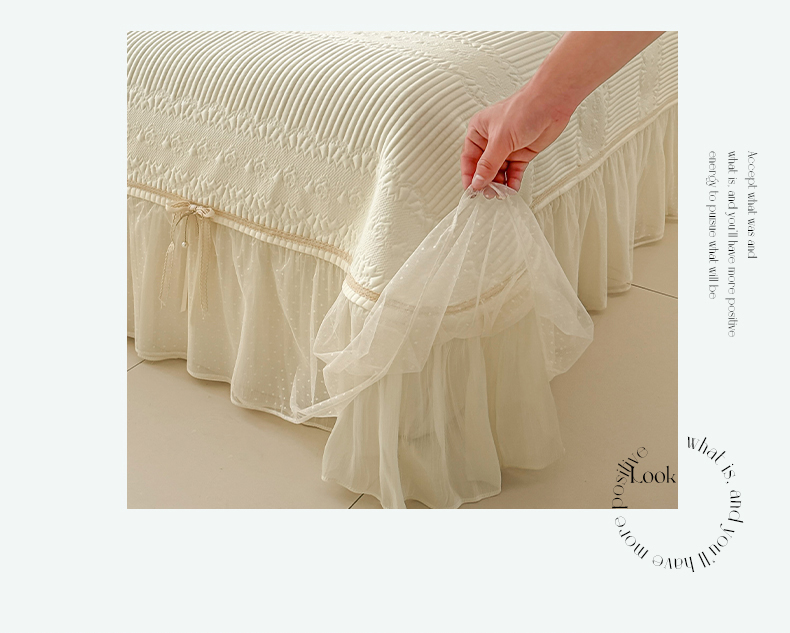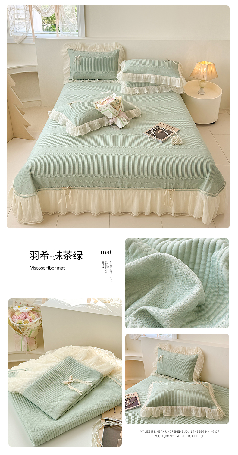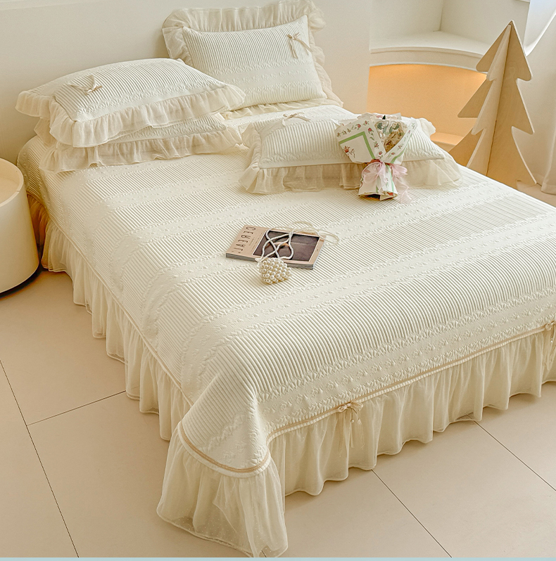 蓝邻家纺 2025春夏新款PE提花海岛皱花边织带款凉席系列-场景二 羽希-米白