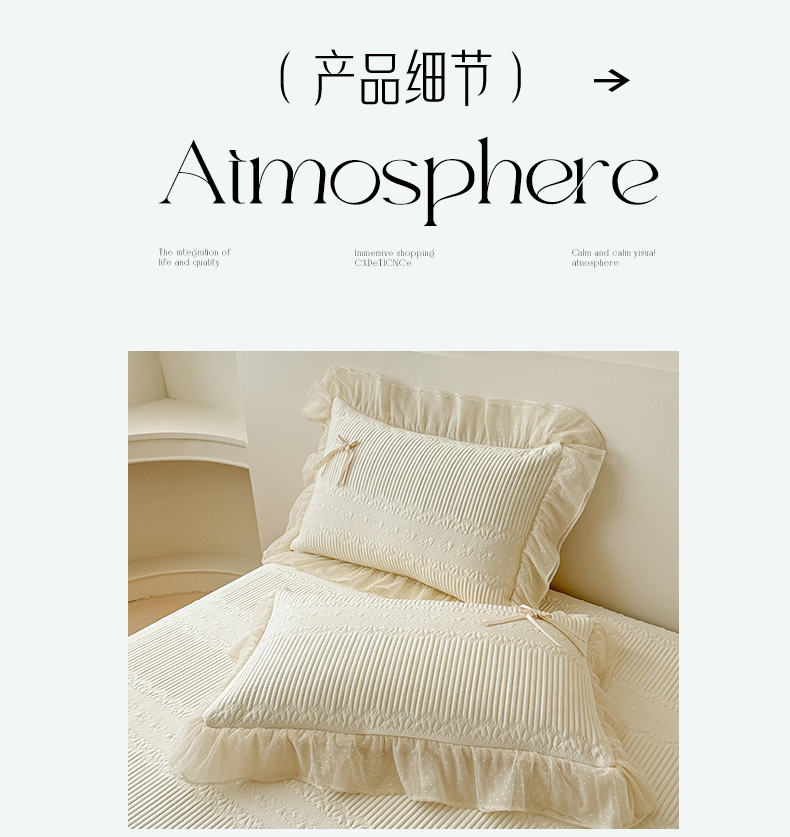 商品名称:蓝邻家纺 2025春夏新款PE提花海岛皱花边织带款凉席系列-场景二 羽希-米白