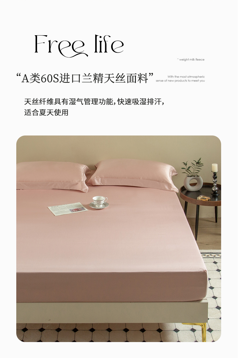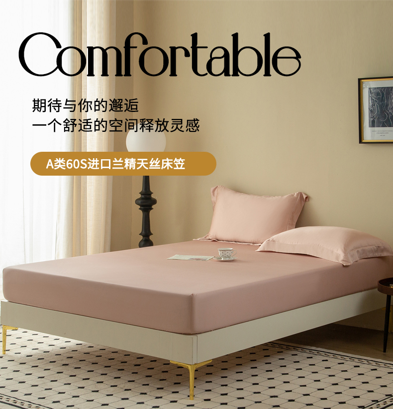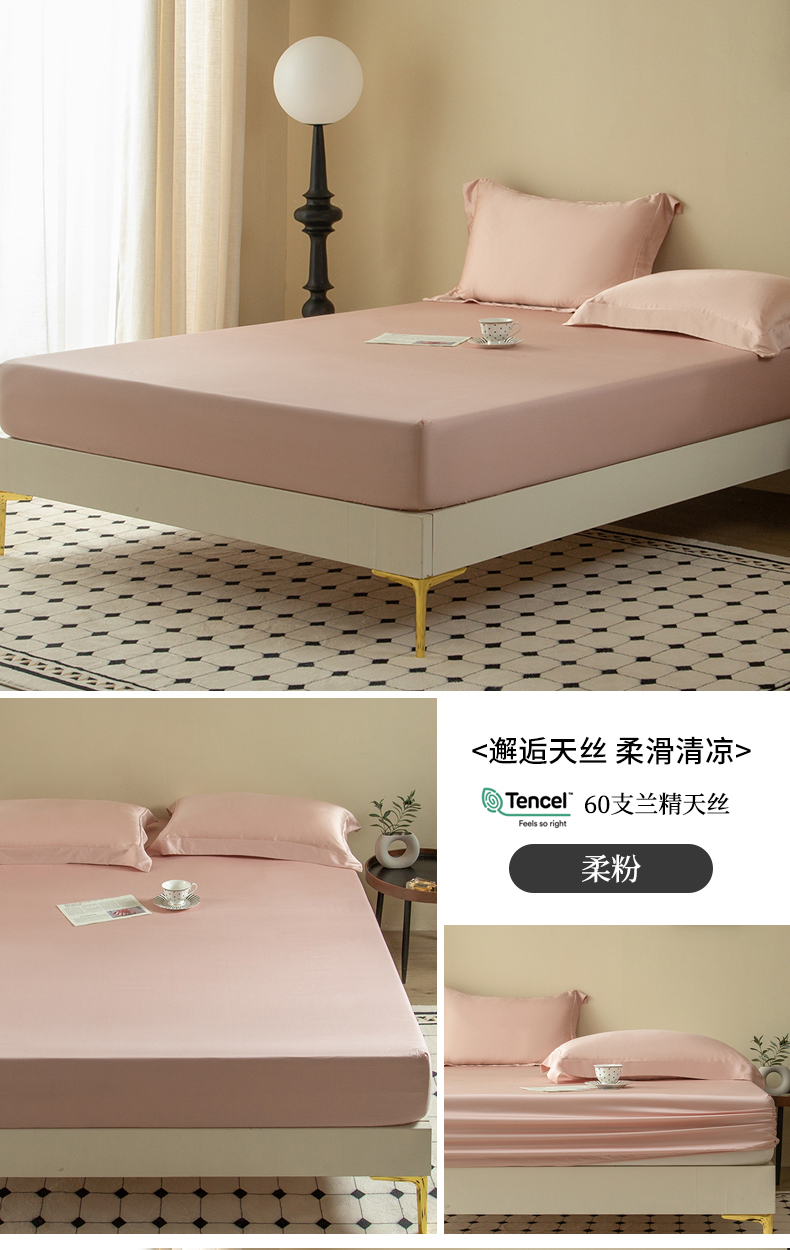 • 91家纺网 家纺一手货源 找家纺 ONE TWO ONE 121 2025新款60支奥地利进口兰精天丝秋风系列单品-床单床笠 柔粉