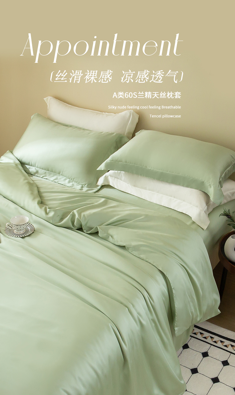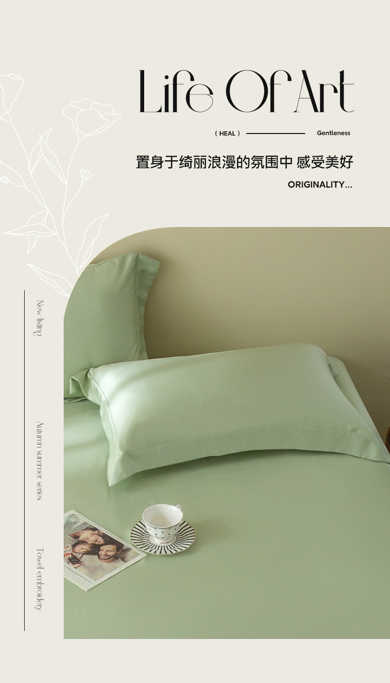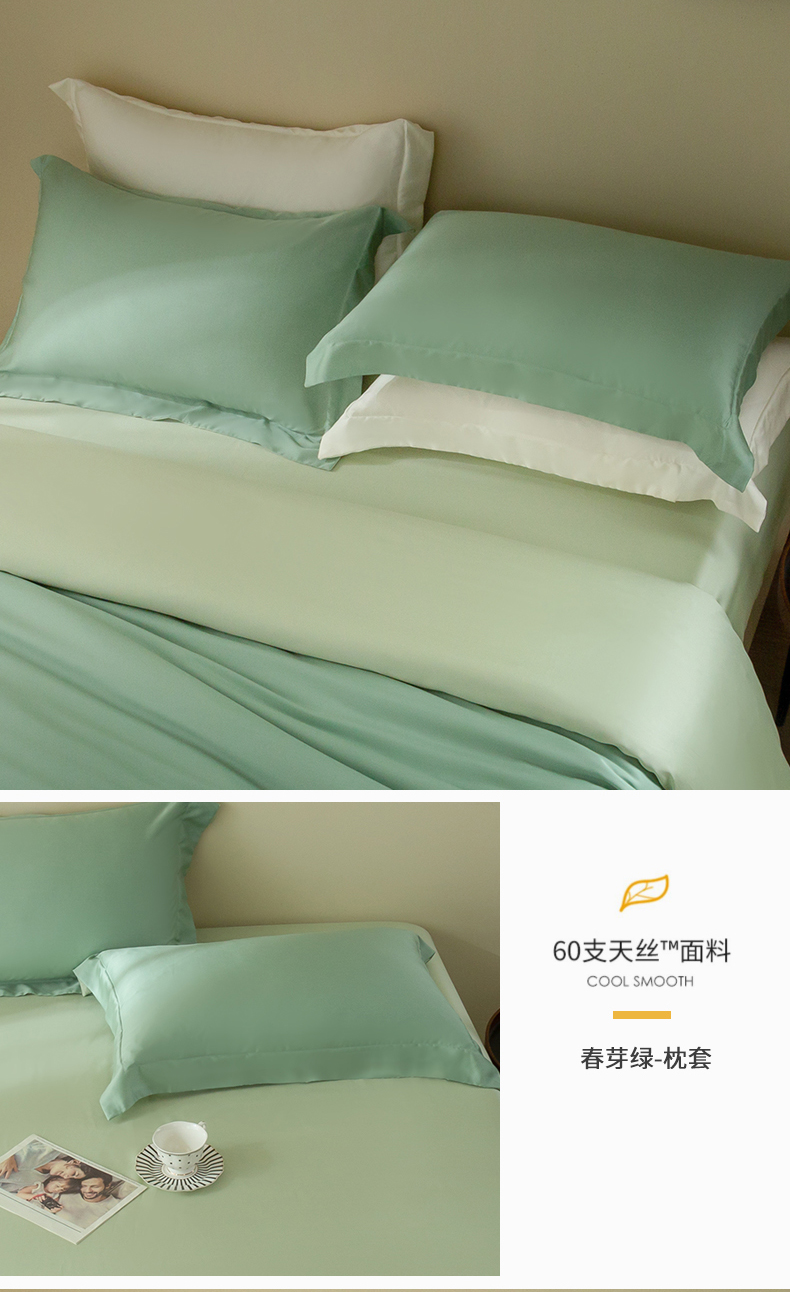 商品名称:ONE TWO ONE 121 2025新款60支奥地利进口兰精天丝秋风系列单品-枕套 多瑙绿