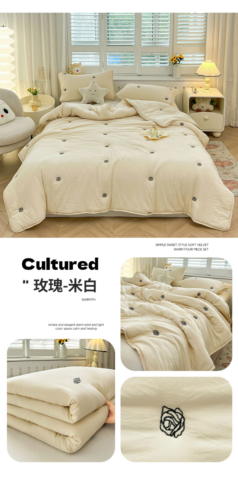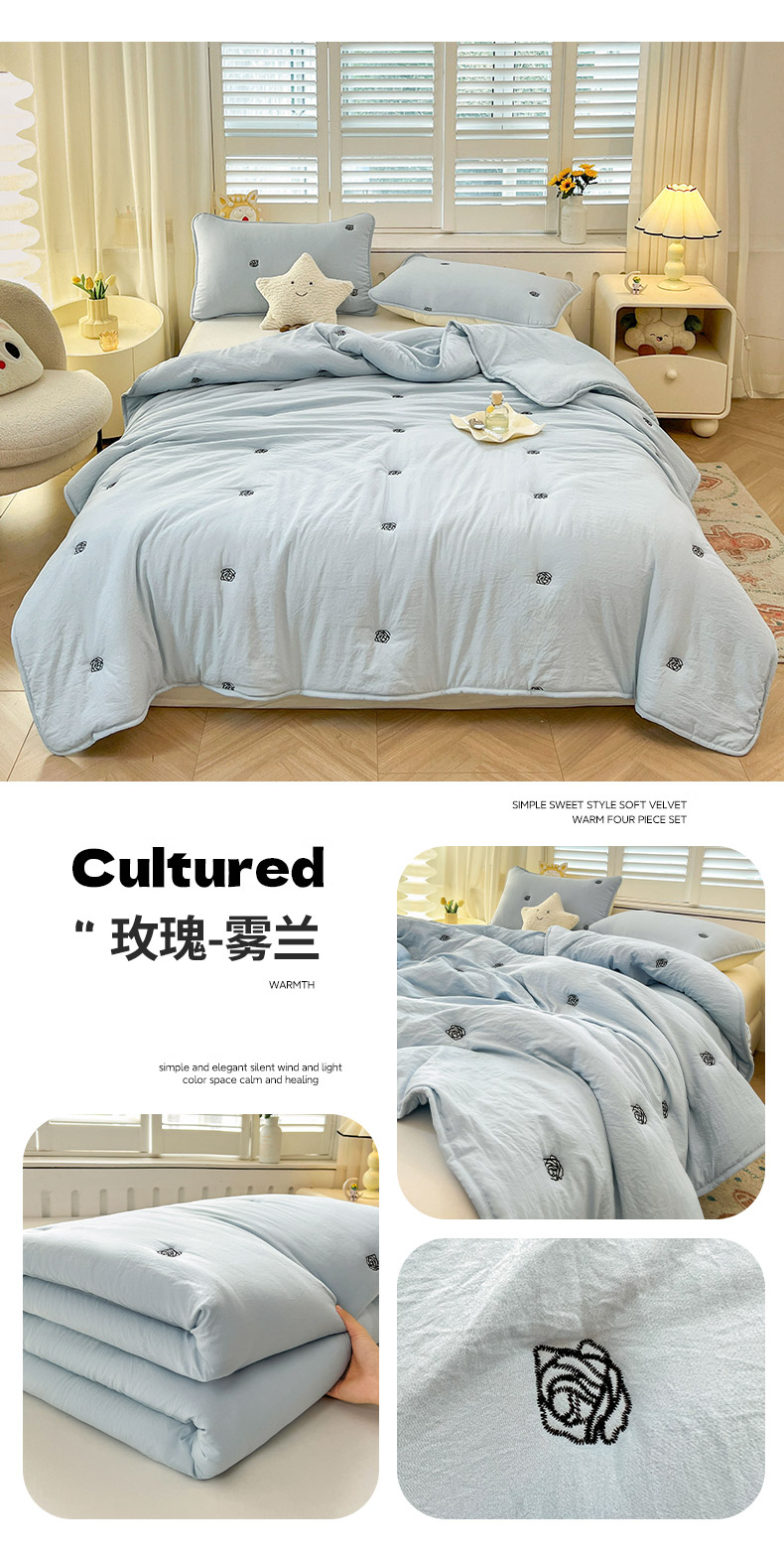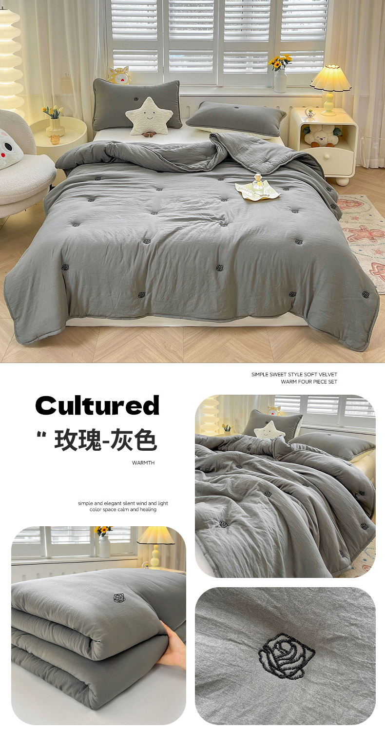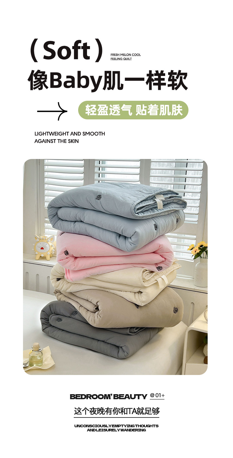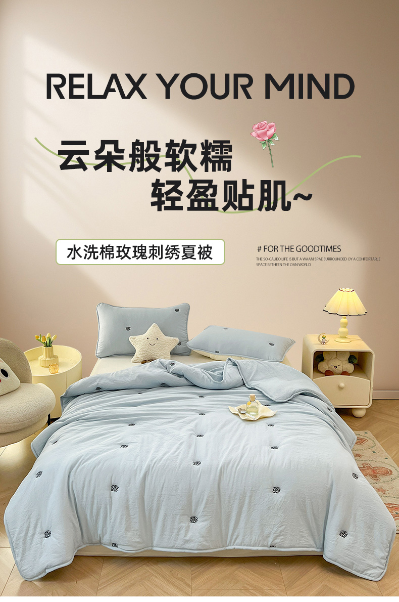 (总)推推家纺 2025新款水洗棉玫瑰刺绣夏被