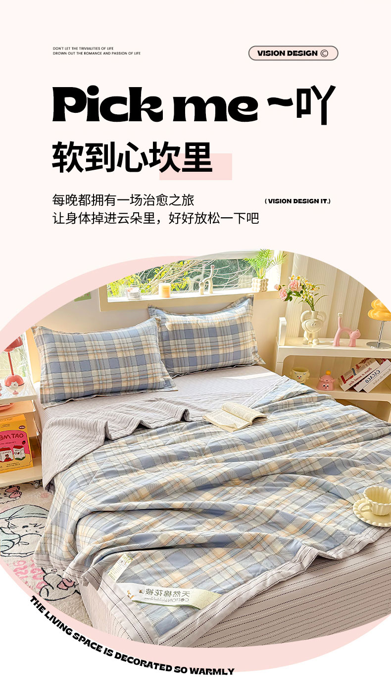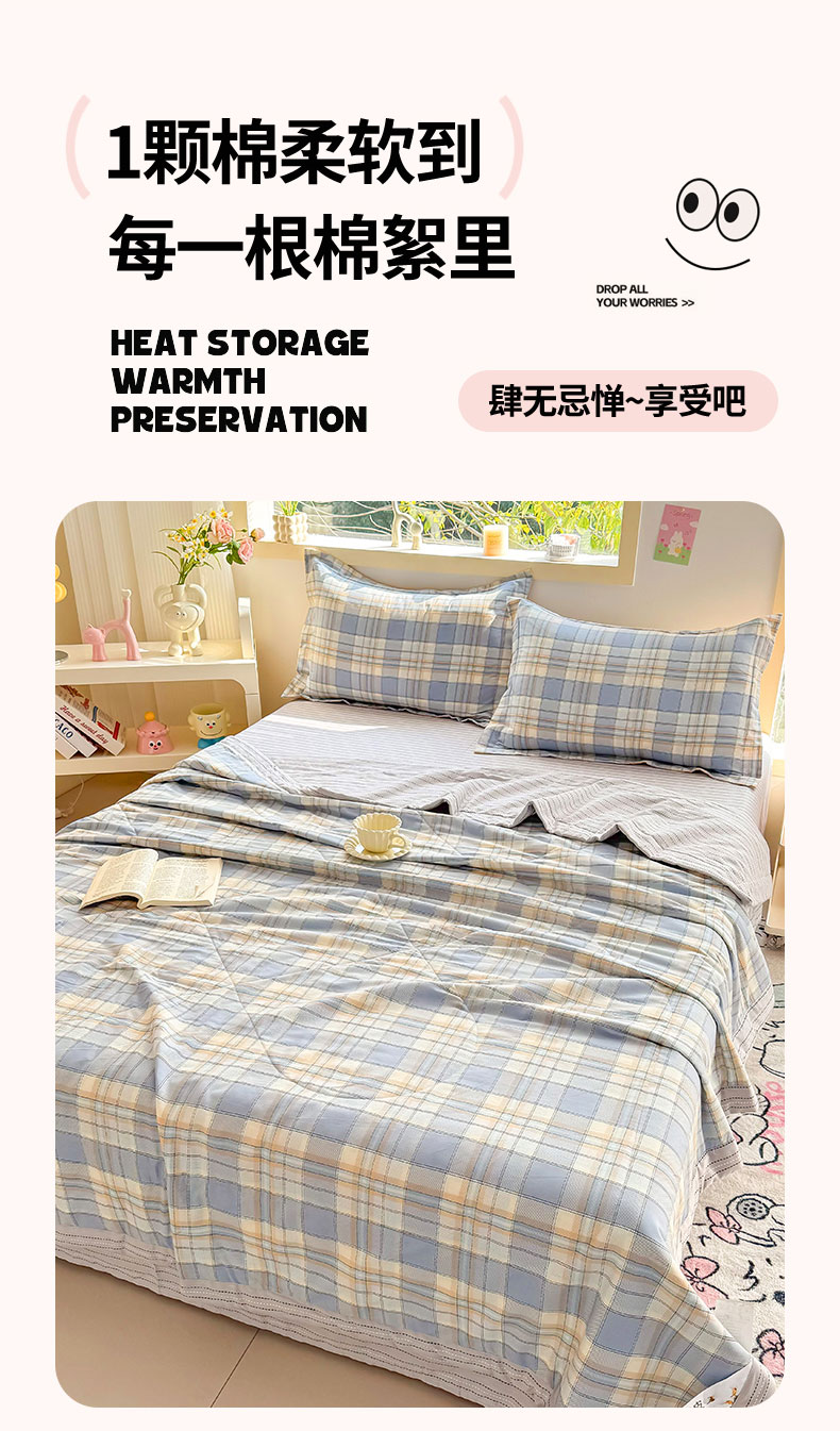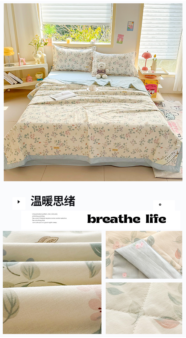 (总)栩裕纺织 2025新款全棉双层纱床盖三件套四件套,可可甜心粉,梦寐花都,抹茶小团子-咖,茉莉清风-粉,木映-绿,暮冬-紫,甜音少女-桔,樱桃奶盖-粉